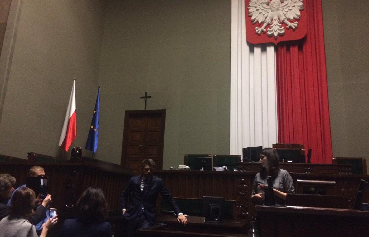 Marszałek przeniósł obrady do innej sali, do czego miał prawo, ale to, co stało się później, uważamy za absolutnie niedopuszczalne i nielegalne. Posłowie opozycji zostali powiadomieni esemesami o posiedzeniu w Sali Kolumnowej, ale najpierw Straż Marszałkowska nie chciała nas tam wpuścić, a później, kiedy już pozwolono nam wejść, nie mogliśmy uczestniczyć w tym posiedzeniu na tych samych prawach co posłowie PiS. W sali krzesła ustawione były w ten sposób, że blokowały dostęp do mikrofonu i marszałka, nie mogliśmy zadawać pytań, składać wniosków. Nie wiemy, czy było kworum, ani jak i kto głosował – do tej pory nie ma imiennych wykazów głosowań.
