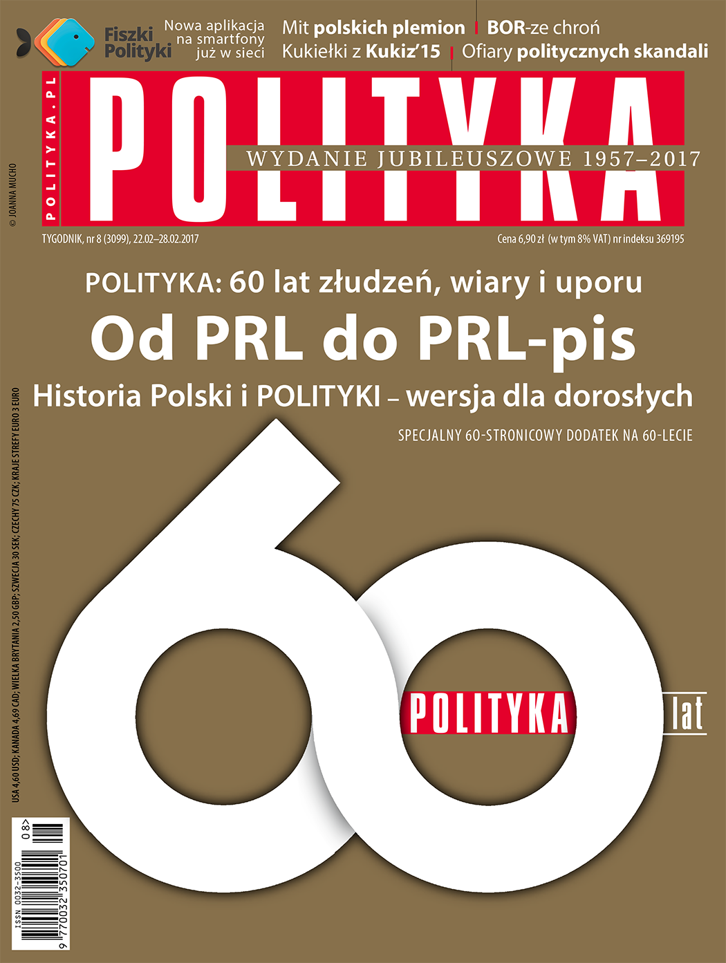 Ale najnowsza POLITYKA to nie tylko jubileusz. Znajdziecie więc Państwo w niej m.in. bajkę o dwóch plemionach Janickiego & Władyki, gdzie autorzy mierzą się z niezwykle dziś popularną teorią o zaciętej walce politycznej, która „nie obchodzi zwykłych ludzi”; tekst Rafała Kalukina o Pawle Kukizie i jego formacji – o co im chodzi i skąd się bierze niewysokie, ale też niesłabnące dla nich poparcie; opowieść Elżbiety Turlej o dalszych losach bohaterek obyczajowo-politycznych skandali ostatnich lat. Także tekst Rafała Wosia o dzisiejszej Solidarności i jej szefie oraz analizę Łukasza Wójcika na temat tego, jak do myślenia o światowej polityce powraca – już bez żadnych zahamowań – broń atomowa. Janusz Wróblewski zaś zastanawia się, kto otrzyma w tym roku filmowe Oscary: murowani faworyci czy też może ci, którzy powinni je dostać.