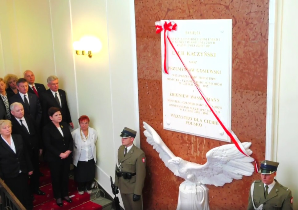 W 7. rocznicę katastrofy w gmachu Kancelarii Premiera zawisła tablica smoleńska