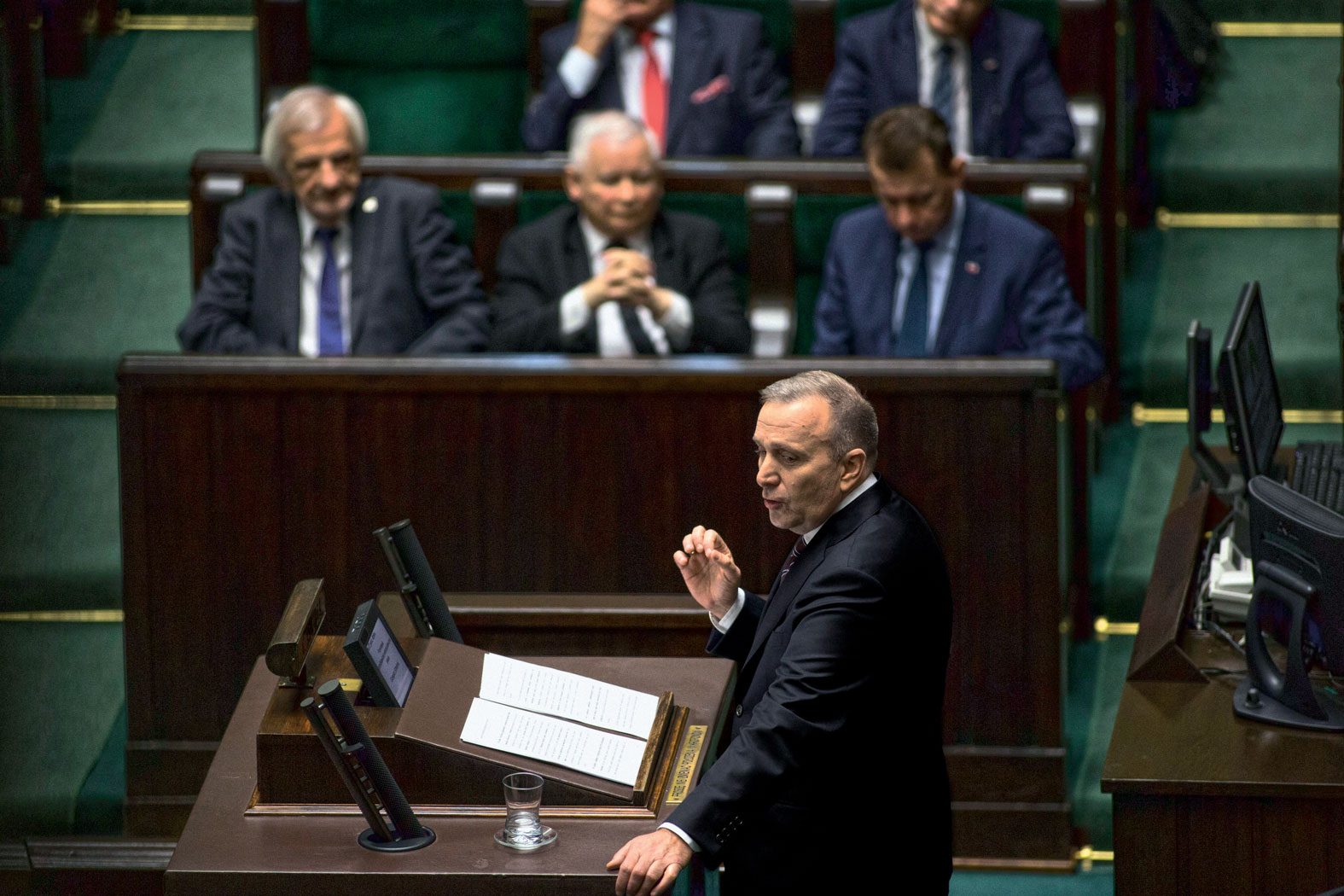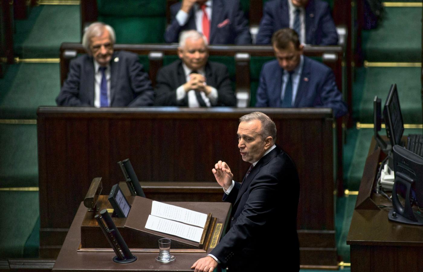 Ten się śmieje, kto się śmieje ostatni – tym słowami rozpoczął swoje przemówienie kandydat na premiera Grzegorz Schetyna, zwracając się do pokrzykujących posłów PiS, którzy usiłowali zagłuszać uzasadnienie wniosku o odwołanie gabinetu Szydło. Przewodniczący PO wiedział, że przy samodzielnej większości PiS wniosek o konstruktywne wotum nieufności nie ma szans, chodziło jednak o to, by Schetyna mógł – w nieograniczonym sejmowym regulaminem czasie – wypunktować fatalną politykę rządzących i przedstawić swoje propozycje. Jego przemówienie było przemyślane, miało sporo mocnych momentów i chwytliwych bon motów, które gwarantowały tzw. cytowalność. Po części, w której szczególnie mocno wybrzmiał zarzut, że rządzący idą „tą samą drogą co dyktatorska Rosja”, przedstawił obietnice Platformy (m.in. „trzynastki” dla emerytów, 500 plus na każde dziecko, decentralizacji, wsparcia „małych ojczyzn” poprzez oddanie im udziału w podatkach, a także cofnięcia szkodliwych decyzji PiS). Schetyna przypominał premier Szydło, że to ona formalnie ponosi odpowiedzialność prawną za działania tej ekipy i że zostanie rozliczona. Swoje słowa lider PO kierował jednak przede wszystkim do Jarosława Kaczyńskiego, podkreślając, że jest on nie tylko twórcą, ale i „kierownikiem tego najgorszego rządu w najnowszej historii Polski”. Wtórował mu szef klubu PO Sławomir Neumann, nazywając prezesa PiS „mistrzem Gepetto”, który „wystrugał sobie rząd Pinokiów”.