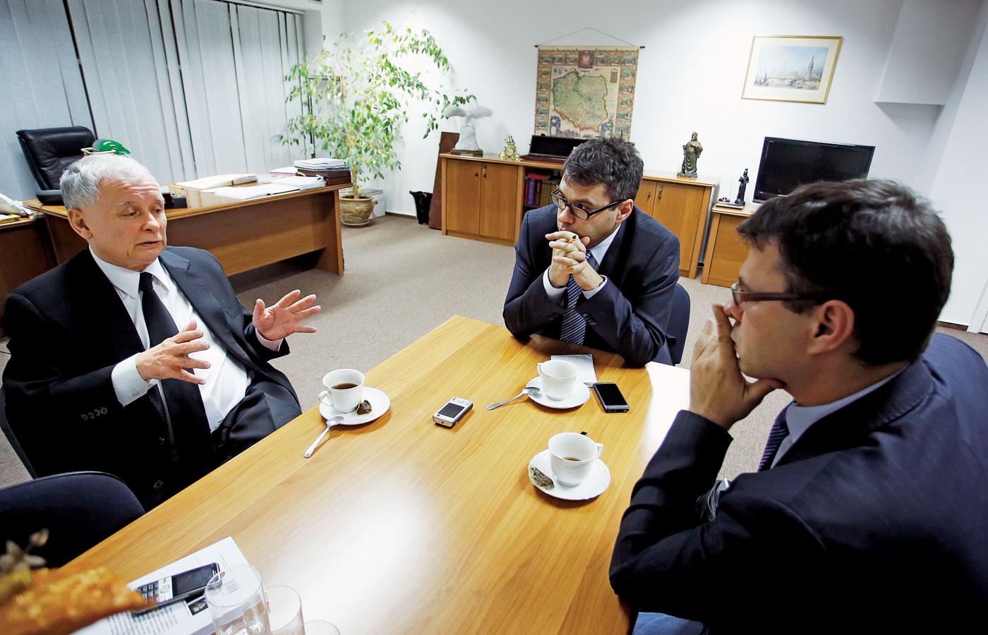 „Wie pani – mówił do Małgorzaty Domagalik w telewizyjnym wywiadzie Kaczyński w 2009 r. – ja przychodzę rano do pracy, do mojego biura, tam są osoby, z którymi pracuję. To nie są osoby o znanych nazwiskach, ale dla mnie są to osoby niezmiernie ważne”. Dodał, że ta stałość i życzliwość jego najbliższego otoczenia to dla niego coś w rodzaju zbroi. Chroni go przed nieżyczliwością i złymi emocjami, które prezes wzbudza na zewnątrz, poza partią. Dlatego po tak nieprzyjemnym doświadczeniu, jakim była dla niego telewizyjna debata z Tuskiem w 2007 r., cztery lata później wezwał go na debatę przy Nowogrodzkiej. Tusk odmówił.