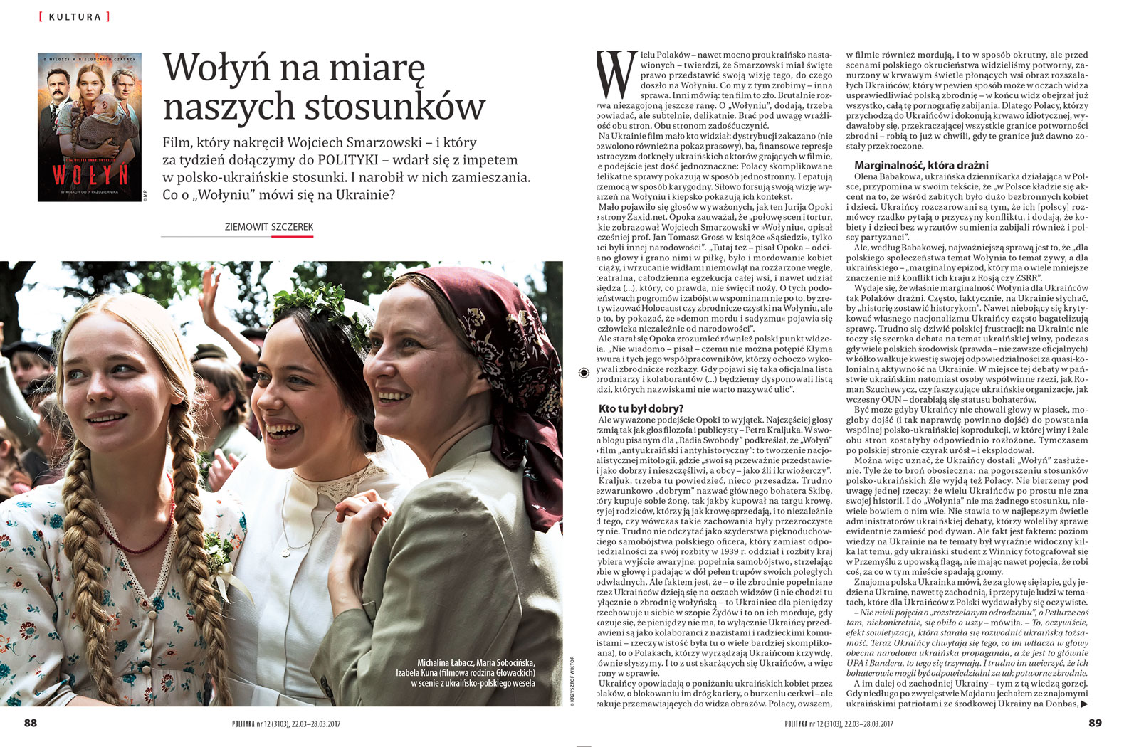 Wchodzę któregoś dnia w internet – a tam się Jurij Andruchowycz wyzłośliwia, że niby go od nacjonalistów wyzywam, bo mu się film „Wołyń” nie podobał. I pan Andrij Pawłyszyn z „Lwiwskiej Hazety” też nade mną ręce załamał: niby taki ze Szczerka funfel Ukrainy, a się nad „Wołyniem” filmem apologetycznie wywzniaśla. A wszystko to dlatego, że w eseju na temat filmu „Wołyń”, który POLITYKA dołączyła do swojego numeru, ośmieliłem się nie wpaść w wojenne tarabanienie pod tytułem „zdrada Smarzowskiego” i nie pytałem, oburzony, „ileż to Smarzowski srebrników z Moskwy wziął za szkalowanie Ukrainy”.