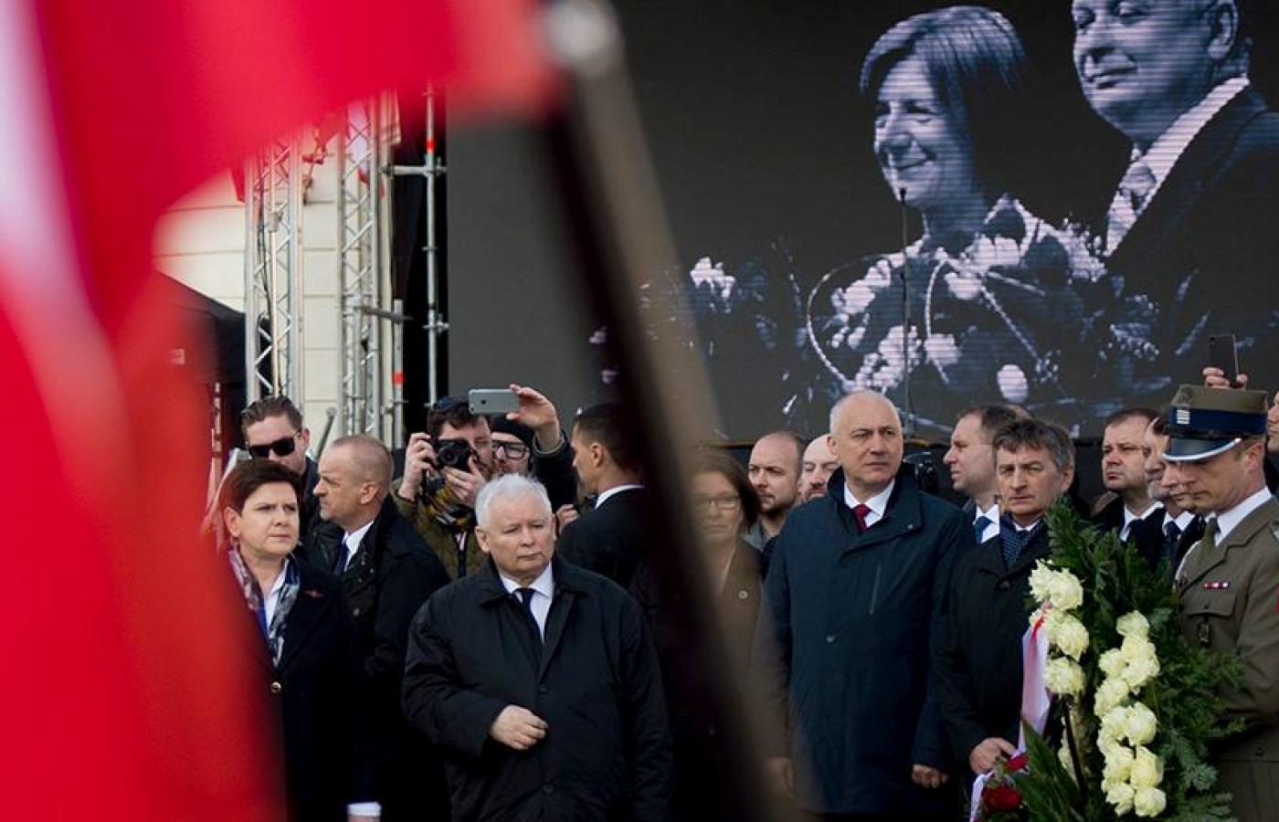 W Kancelarii Premiera podczas odsłonięcia tablicy upamiętniającej Lecha Kaczyńskiego, Zbigniewa Wassermanna i Przemysława Gosiewskiego prezes PiS mówił, że po katastrofie smoleńskiej doszło do podziału w społeczeństwie.