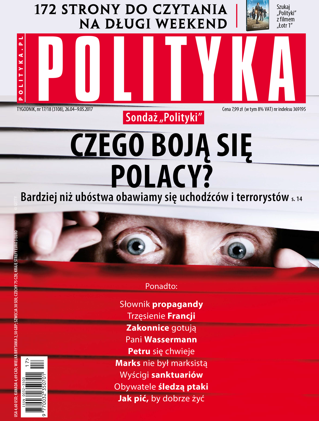 A w najnowszej POLITYCE? Na zlecenie naszej redakcji pracownia Kantar Public przeprowadziła sondaż pod hasłem: czego boją się Polacy? Pytaliśmy o różne zjawiska społeczne, polityczne, ekonomiczne, także o te z życia codziennego. Okazuje się, co nas mocno zaskoczyło, że najbardziej obawiamy się terrorystów i uchodźców, choć w Polsce nie ma terroru ani fali emigrantów. Czego jeszcze się obawiamy, w jakiej kolejności, co z tego wynika dla kraju i społeczeństwa? Polecam bardzo interesujący tekst Joanny Cieśli, w którym prezentuje ona wyniki sondażu wraz z komentarzami ekspertów.