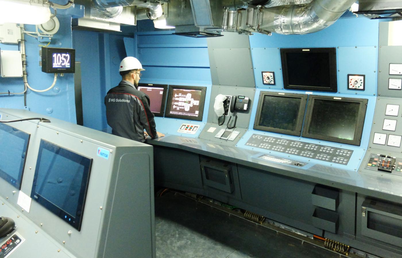 Potężna turbina gazowa General Electric, wytwarzająca moc 33,5 tys. koni mechanicznych, to główna siłownia okrętu, który miał być szybki i zwrotny. Pod pokładem są jeszcze dwa „awaryjne” diesle. Pomieszczenie zarządzania zespołem napędowym nie przypomina okrętowej „maszynowni”. Dookoła same pulpity z wielkimi ekranami komputerowymi i wskaźniki pokazujące stan urządzeń. Taka mała elektrownia. To oczywiście standard na współczesnych statkach i okrętach wojennych, ale wśród legend i plotek o najdłużej budowanym polskim okręcie warto mieć świadomość, że nic nie stracił z nowoczesności.