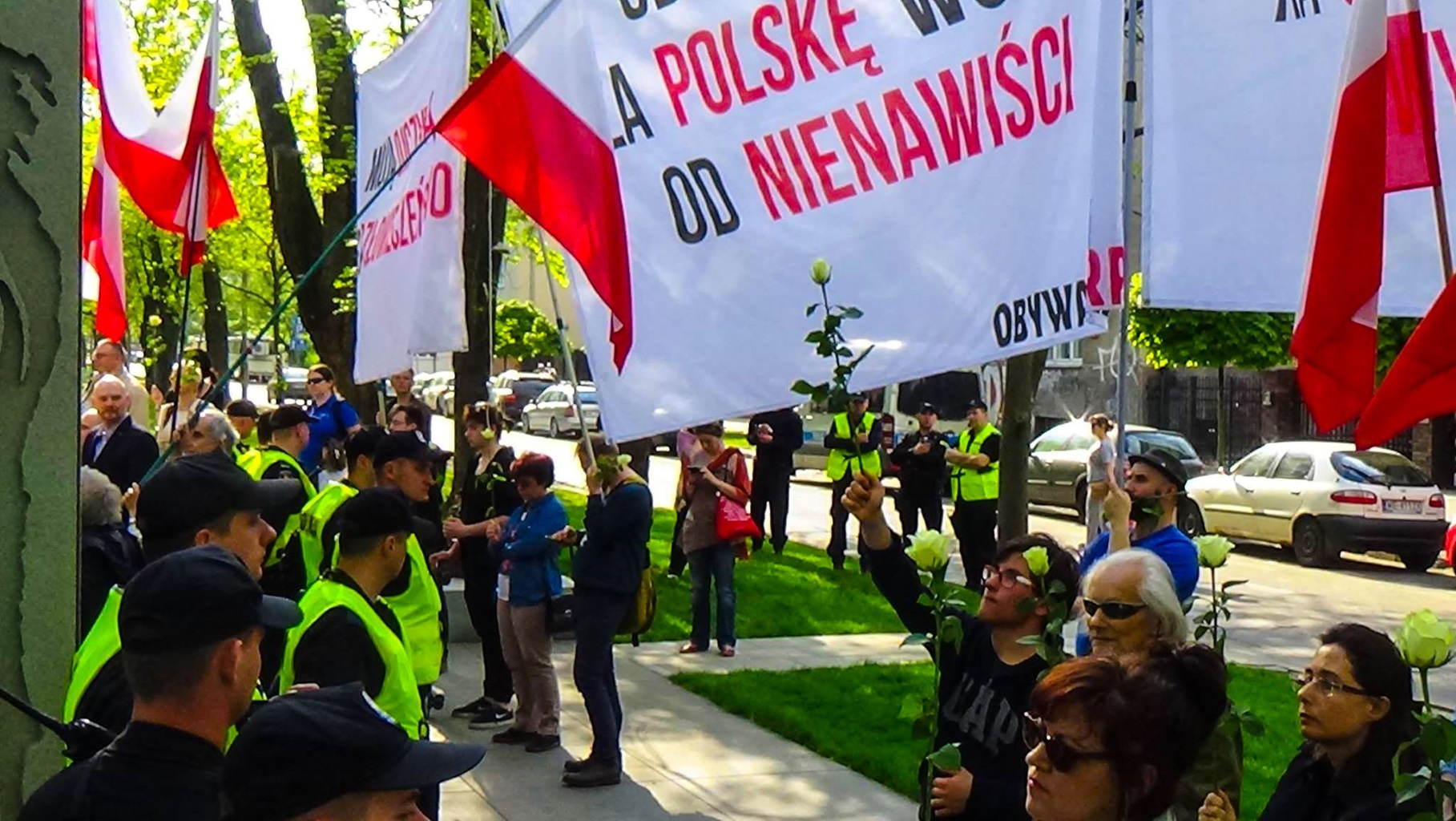 Symbolem walki z rodzącą się dyktaturą PiS nieoczekiwanie stała się uniesiona w górę biała róża. W największym stopniu przyczynił się do tego sam Jarosław Kaczyński, który podczas 85. miesięcznicy smoleńskiej na widok róż w rękach stojących naprzeciw kontrmanifestantów obwieścił, że są one symbolem nienawiści i głupoty.