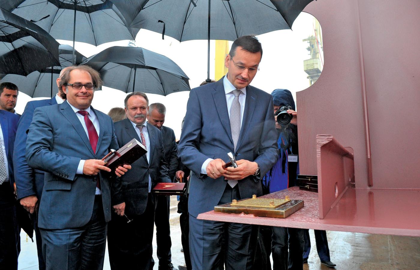 A projektu nadal nie ma. Jest – jak mówią zainteresowani – w pierwszej fazie prac. Wciąż nie przygotowano też placu budowy, czyli pochylni Wulkan w dawnej Stoczni Szczecińskiej. Najpierw trzeba tam wpompować 100 mln zł w ramach modernizacji. Tak więc przywołane przez wicepremiera położenie stępki, które odbyło się 23 czerwca br. na Wulkanie, było tylko propagandowym przedstawieniem. Prócz Morawieckiego sukces fetowali wicemarszałek Sejmu Joachim Brudziński, minister gospodarki morskiej i żeglugi śródlądowej Marek Gróbarczyk, podsekretarz stanu w Kancelarii Prezydenta RP Paweł Mucha.