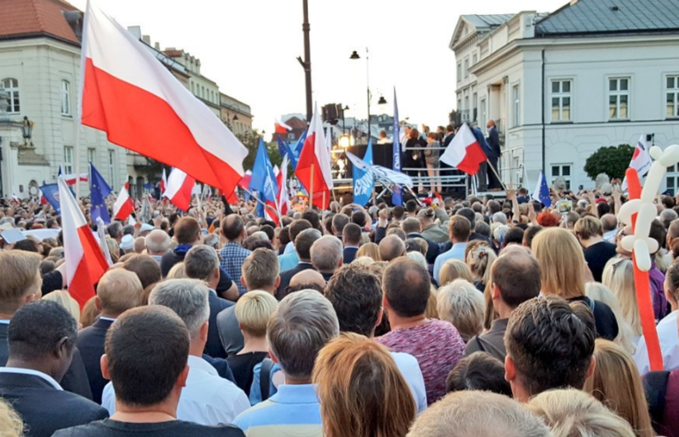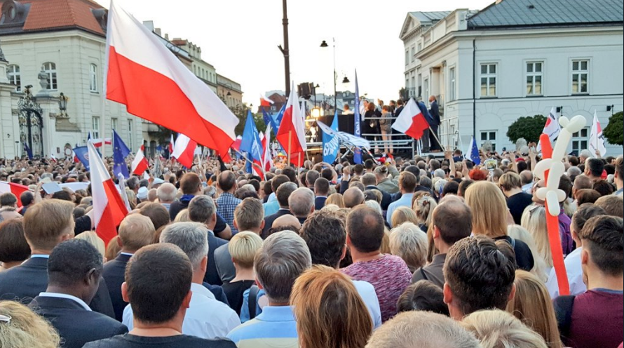 Wieczorem rozpoczął się protest organizowany przez Nowoczesną, Platformę Obywatelskiej i KOD pod Pałacem Prezydenckim na Krakowskim Przedmieściu. Zebrani wzywali prezydenta Andrzeja Dudę do zawetowania ustaw dotyczących wymiaru sprawiedliwości. Niestety obywatele zebrali się pod pustym Pałacem Prezydenckim. Dlaczego? Prezydent Andrzej Duda od kilku dni jest na wakacjach. Po wizycie brytyjskiej pary książęcej wyjechał do prezydenckiej rezydencji na Półwyspie Helskim.