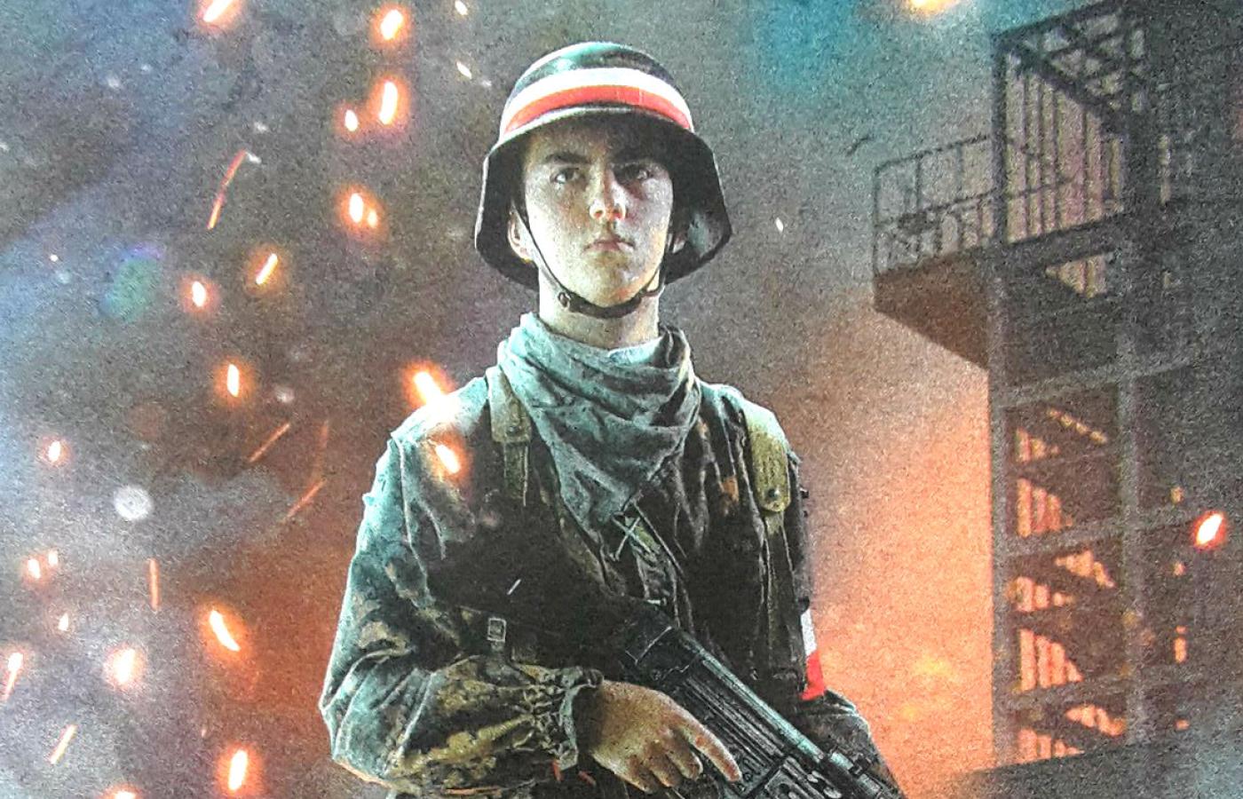 To trudno opisać, to trzeba zobaczyć, nawet jeśli zabolą oczy, ale w przybliżeniu wygląda to tak, że na tle płonącego miasta stoi młody powstaniec z karabinem w ręku i biało-czerwoną opaską na hitlerowskim hełmie. Są i hasła: „PGE – zapewniamy energię” oraz „Poświęcenie to wielka energia”.