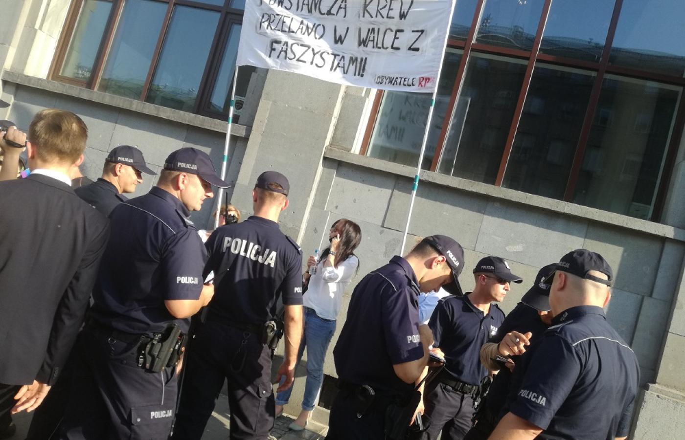 I to tak gorliwie, co znamienne, że grupkę obywateli protestujących przeciwko dopuszczaniu faszyzmu na ulice odgrodzono szczelnym kordonem funkcjonariuszy i „suk”. Równocześnie policjanci (i to różnych szczebli) nie reagowali na zgłoszenia możliwości popełnienia czynu zabronionego przez odpalających na ich oczach środki pirotechniczne uczestników „narodowego” zgromadzenia.