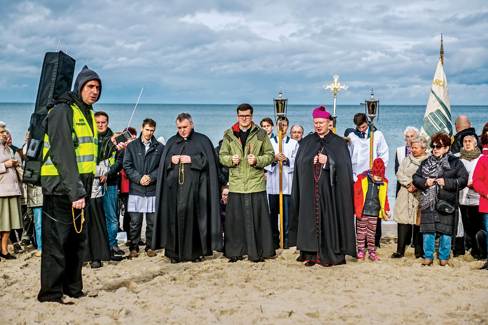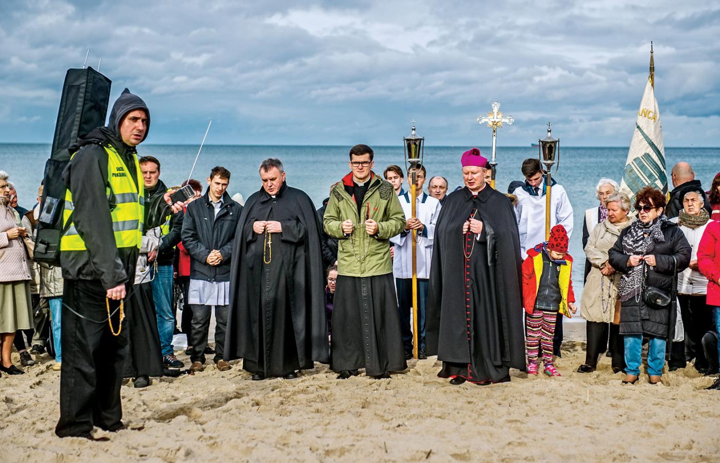 Nie udało się opasać granic Polski kordonem modlących się, bo nawet na bałtyckich plażach ludzie nie tworzyli łańcucha, tylko trzymali się w kilkudziesięcio- lub kilkusetosobowych grupach. Zwłaszcza ci, którzy przyjechali zorganizowani ze swoimi parafiami. Jak żeńska wycieczka z Mogilna w woj. kujawsko-pomorskim (w autokarze było może ze dwóch mężczyzn), skrzyknięta przez założycielkę rodziny Radia Maryja, czy delegacja parafii z Powidza. Jedni i drudzy trafili do kościoła w Gdańsku Jelitkowie, tuż nad morzem. Kilkusetosobowa grupa modliła się razem przy wejściu na plażę nr 63, skupiona wokół księdza proboszcza, który apelował o rozciąganie się w lewo, w kierunku Sopotu, i w prawo, do Przymorza. Posłuchali młodsi, którzy najwyraźniej chcieli modlić się w skupieniu, sami, co najwyżej ze słuchawką w uchu i uruchomioną na smartfonie aplikacją Radia Maryja.