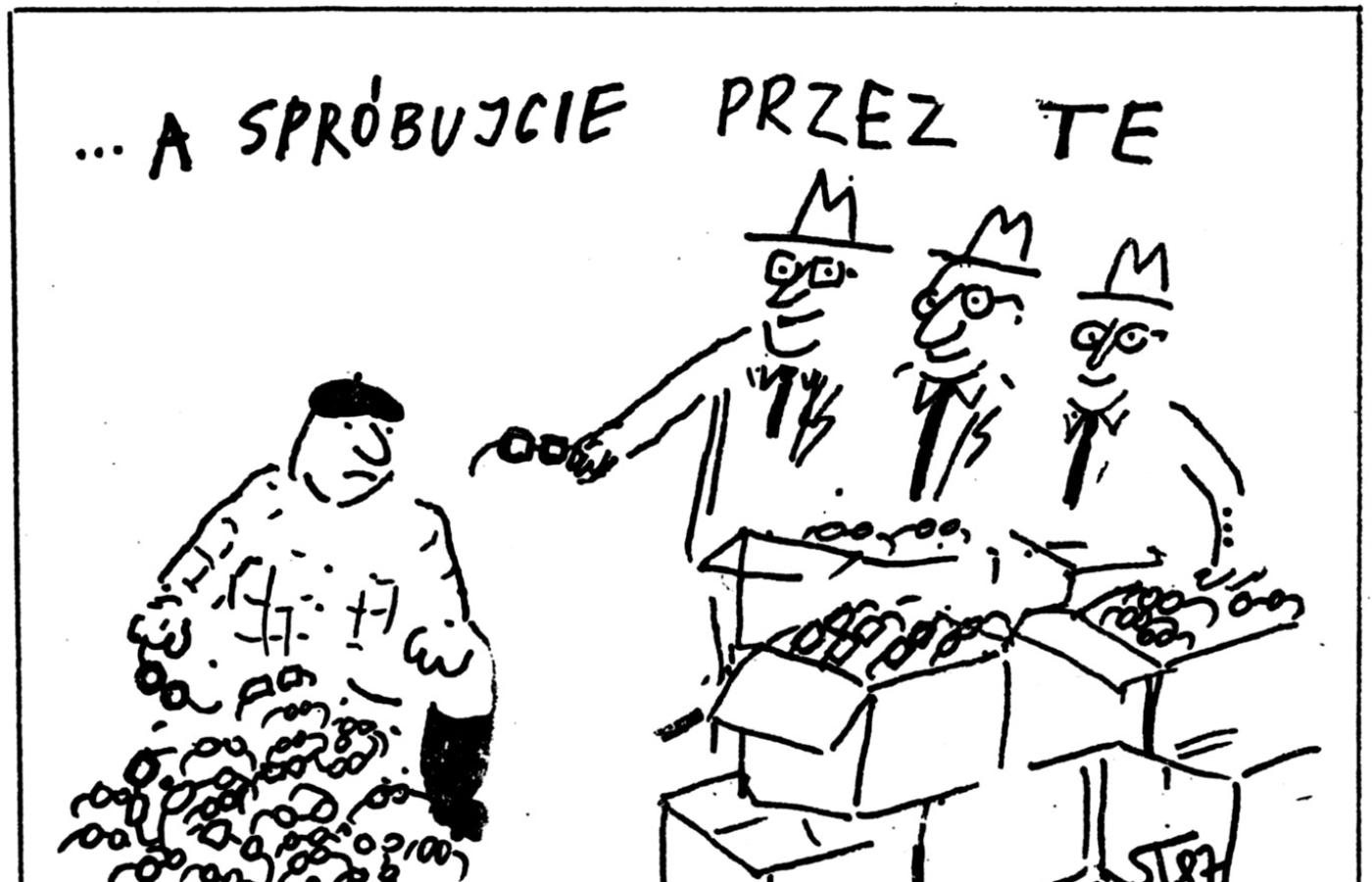 Obok rysunek zamieszczony w „Tygodniku Kulturalnym” w 1987 r.