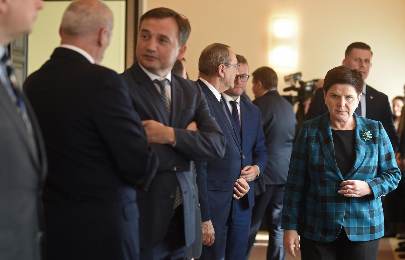Na tym tle pogarsza się sytuacja całej opozycji, która nie przekonała wielkich grup społecznych do idei integralnego antypisu. Zarysowuje się więc coraz wyraźniej tendencja do poszukiwania dla opozycji drogi na przecięciu się z propozycjami PiS, a nie na całkowitej kontrze. Do wyboru są następujące (zakładając rzecz jasna pewne uproszczenia) kombinacje wartości: niepraworządność plus socjal (to jest PiS), niepraworządność plus brak socjalu (tak PiS postrzega osiem lat rządów Platformy i próbuje ten przekaz narzucać), praworządność plus brak socjalu (z grubsza Platforma przez lata i dzisiejsza Nowoczesna) oraz praworządność plus socjal – i ta ostatnia opcja jest w zasadzie wolna i do zastosowania. Wydaje się, że ten kierunek, zwłaszcza dla PO, ewentualnie jakiejś nowej formacji, zyskuje coraz większe zainteresowanie. Hasła same się narzucają: sprawne państwo – wolne społeczeństwo, 500 plus demokracja itp.
