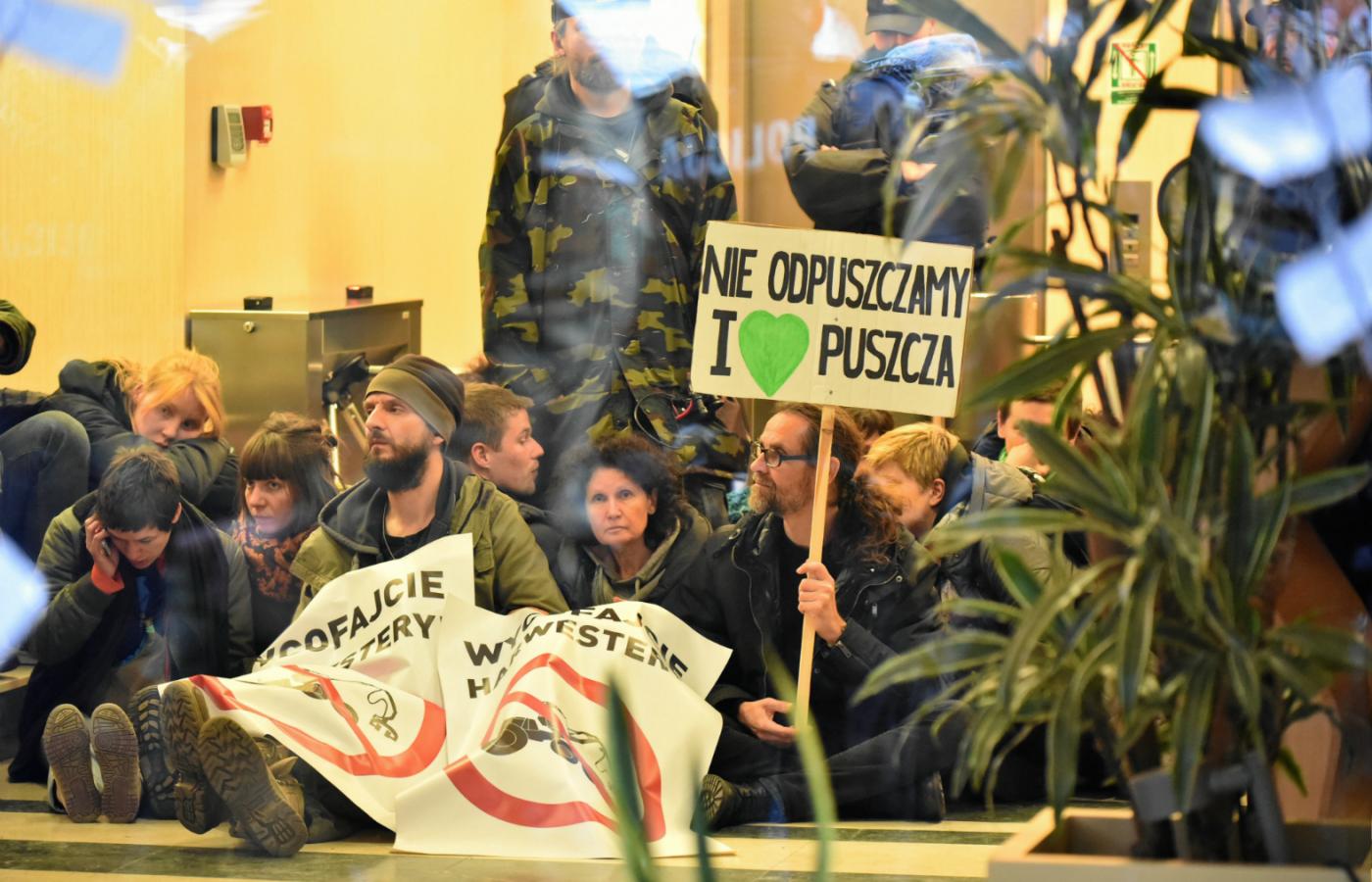 Od czwartkowego popołudnia 22 osoby, które protestowały w siedzibie Lasów Państwowych przeciwko bezprawnej wycince Puszczy Białowieskiej, są pozbawione wolności. Nie mają jeszcze postawionych zarzutów, ale policja mówi o naruszeniu miru domowego.