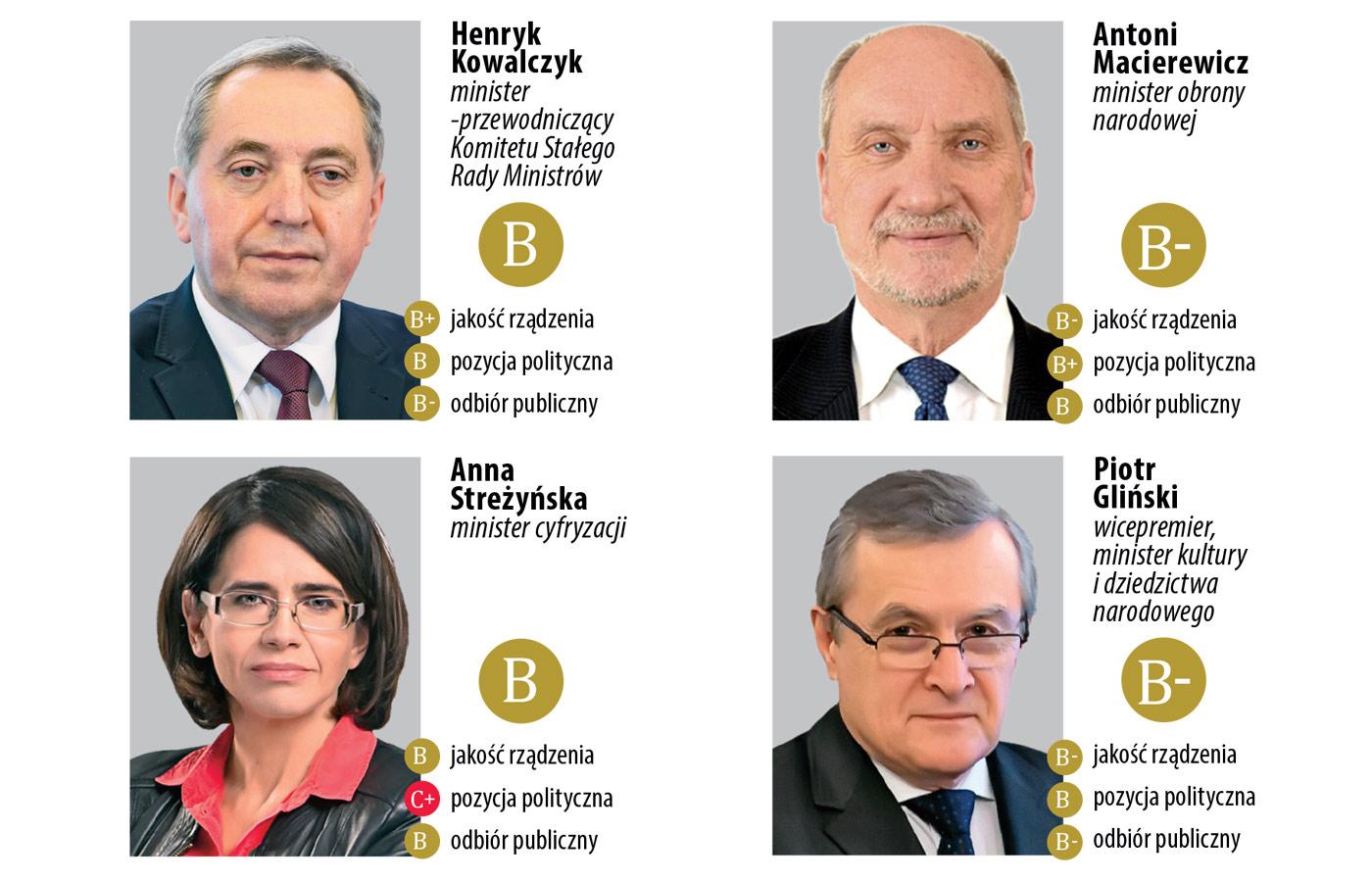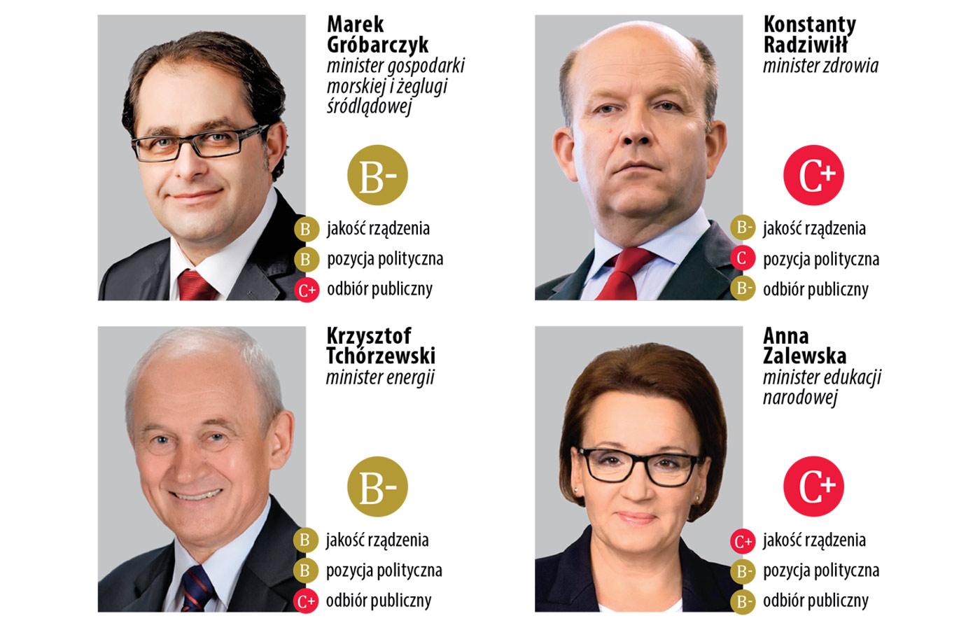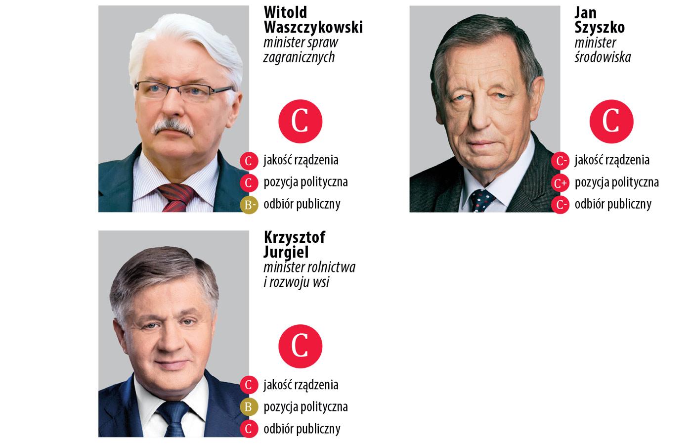 Na końcu ratingu znaleźli się ministrowie, którzy już niedługo mogą się pożegnać z rządem. Andrzej Adamczyk może zapłacić za opóźnienia programu Mieszkanie+. Witold Waszczykowski – za liczne gafy, a jednocześnie niewystarczająco szybkie, jak na wymogi PiS, czyszczenie swojego resortu z niechcianych ludzi. Krzysztofa Jurgiela, który ma kłopoty w niemal wszystkich dziedzinach, za które odpowiada jego resort (np. w sprawie pomoru świń czy zakupu ziemi przez cudzoziemców), ratuje tylko wieloletnia znajomość z Jarosławem Kaczyńskim.