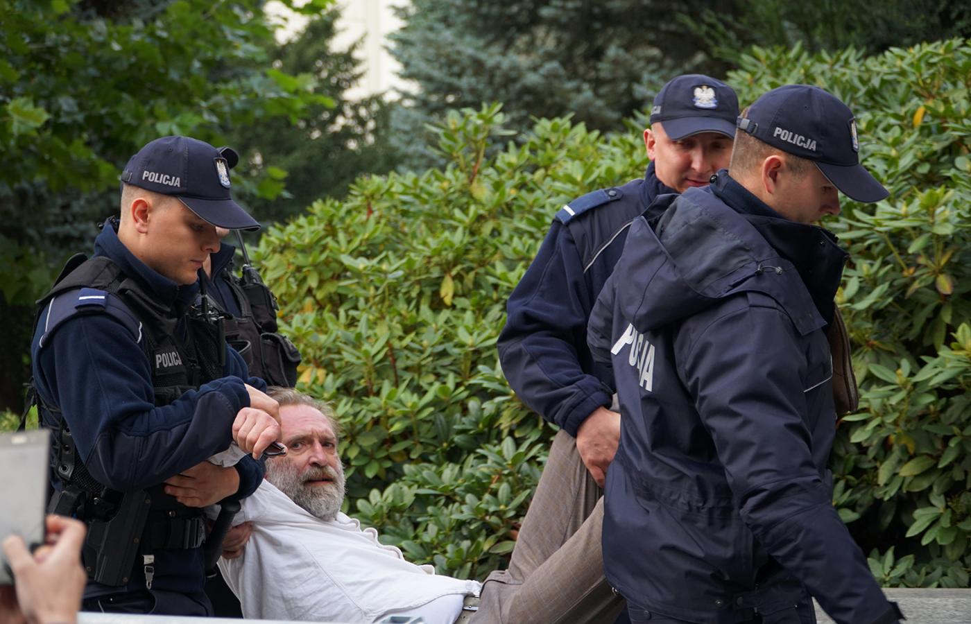 Zobaczmy więc szerzej choć jeden z tych pojedynczych epizodów, szczególnie że dotyczy on większej grupy. Pośmiejemy się dalej? Czasy są w końcu przychylne komediantom, prawda? A oto ta historia. Obóz dla Puszczy, który 9 listopada 2017 roku przed siedzibą Dyrekcji Generalnej Lasów Państwowych przeprowadził protest mający zwrócić uwagę na postępującą dewastację Puszczy Białowieskiej, poinformował, że demonstranci byli skuwani przez policjantów kajdankami z rękami na plecach, mimo że nie stawiali oporu ani nie próbowali uciekać. Według ich relacji na komendzie niektórzy aktywiści zostali pozbawieni dostępu do jedzenia przez kilkanaście godzin po zatrzymaniu, odebrano im także lekarstwa i środki higieniczne. „Część z nas była traktowana poniżająco, odmawiano nam prawa do skorzystania z toalety, sugerowano, że jesteśmy opłacani za nasze działania” – napisali poszkodowani.