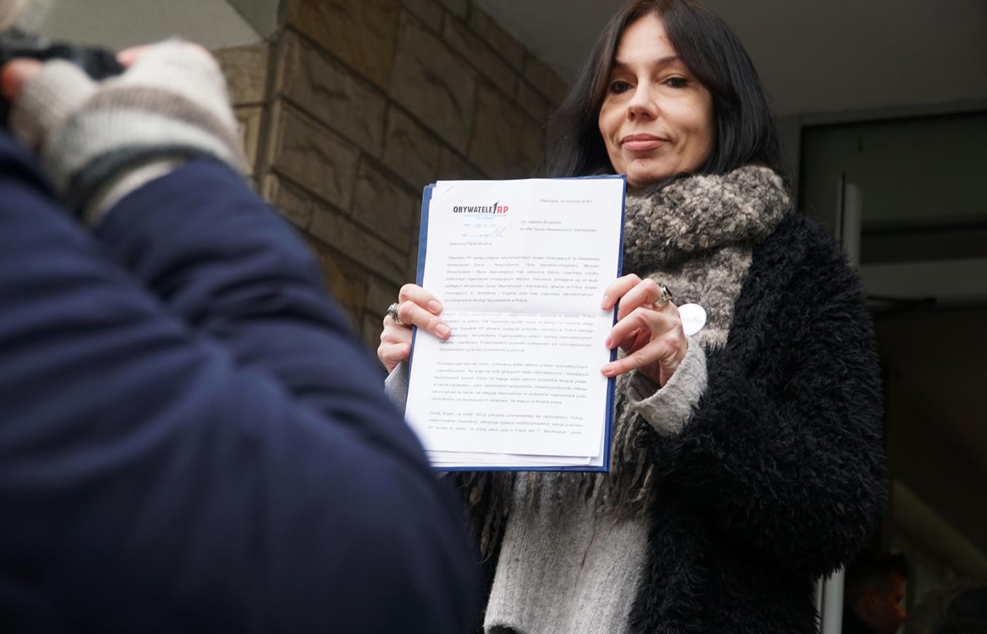 „Stanowczo domagamy się od służb podległych Ministerstwu Spraw Wewnętrznych i Administracji, głównie od policji, działań zmierzających do identyfikacji i ścigania osób oraz organizacji odpowiedzialnych za propagowanie ideologii faszystowskiej w Polsce – czytamy w liście złożonym 26 stycznia 2018 roku w biurze podawczym MSWiA przez Obywatelki RP. – Oburzająca jest bierność policji i prokuratury wobec jawnych praktyk nacjonalistycznych i ksenofobicznych”.