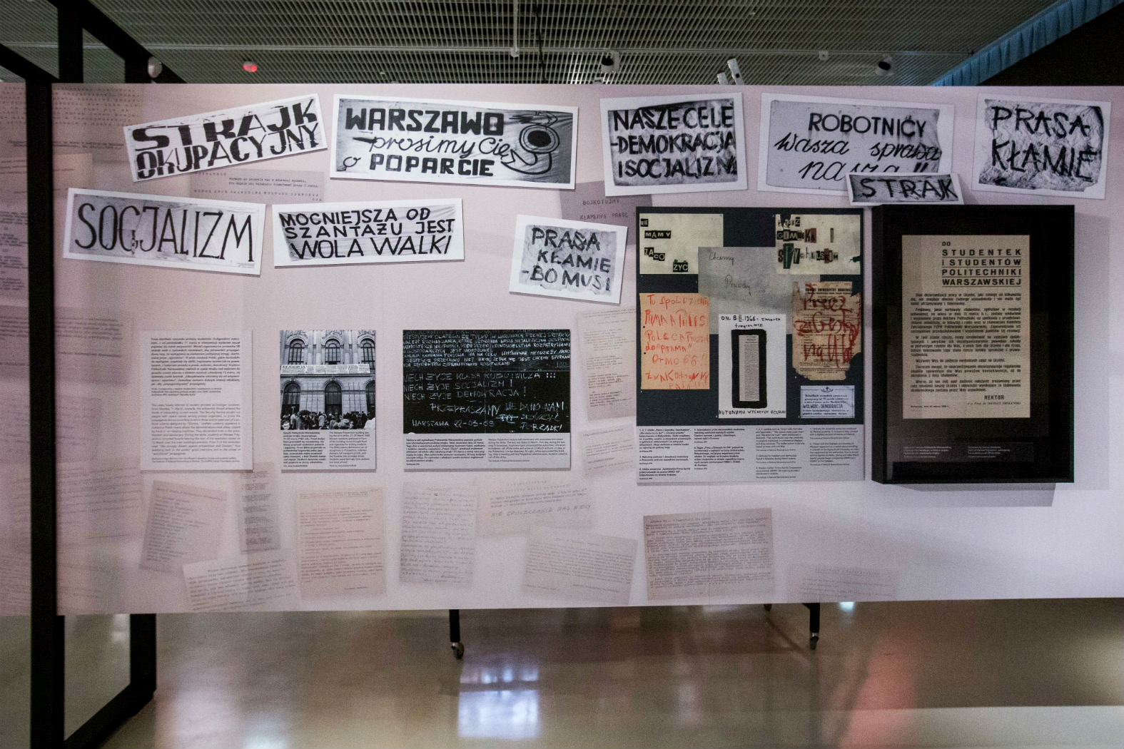 Obok nich znajduje się także zapis współczesnych przejawów hejtu i mowy nienawiści, zestawiony z przykładami z 1968 roku. To tzw. „marcowe gadanie” – termin sformułowany przez prof. Michała Głowińskiego i przedstawiony w książce o tym samym tytule. Przykłady: „organizatorzy burd i awantur”, „mąciciele porządku publicznego” i przede wszystkim hasło rozpowszechnione przez zawarty w nim błąd: „Syjoniści do Syjamu!”.