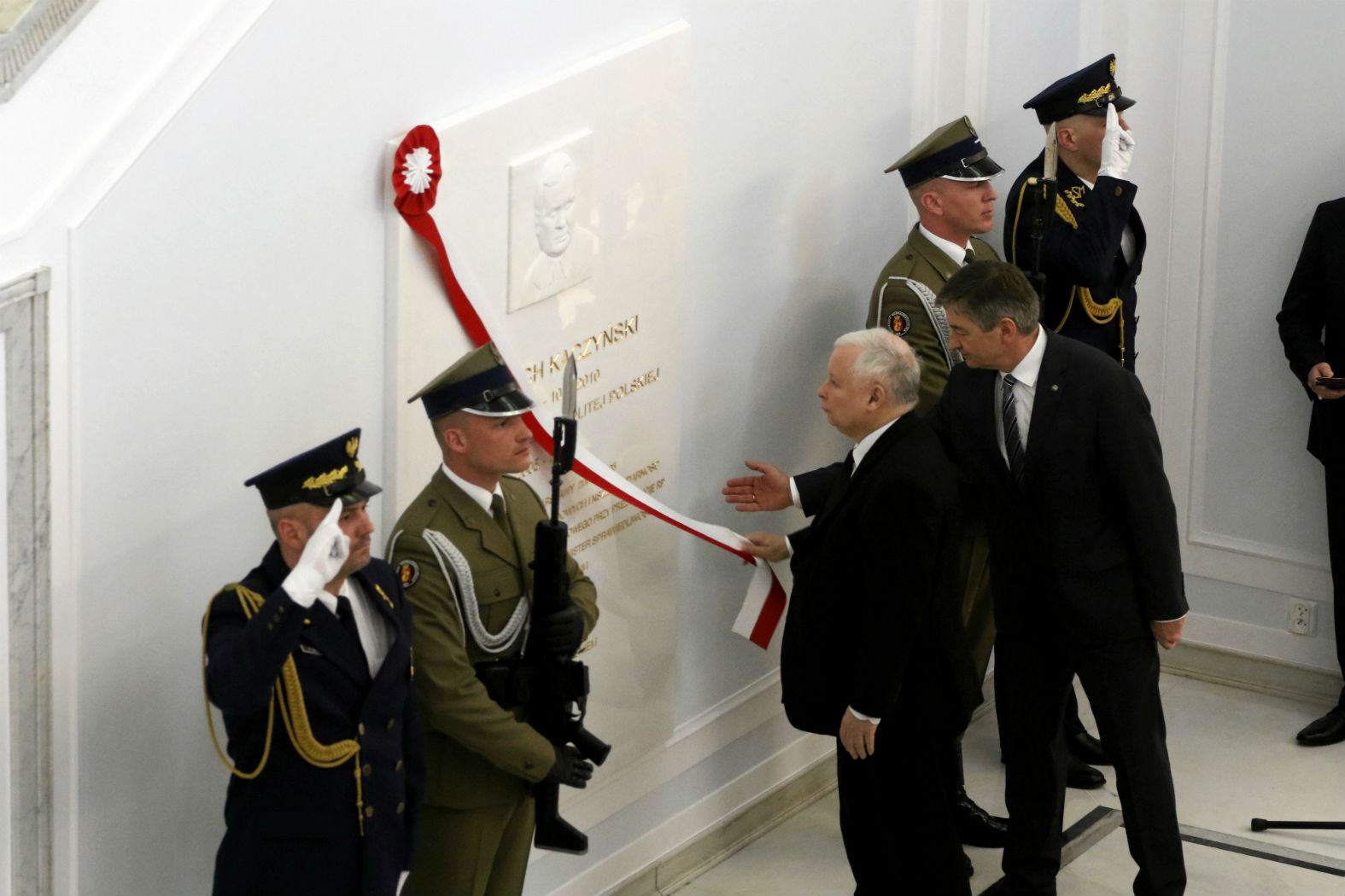 W Sejmie obecnym, kierowanym przez marszałka Marka Kuchcińskiego, zastosowano metodę faktów dokonanych. Informacja o nowej tablicy wypłynęła cztery dni przed jej odsłonięciem. Poseł Sławomir Neumann, przewodniczący Klubu Parlamentarnego PO (i z racji tej funkcji członek Konwentu Seniorów), napisał, że zrobiono to „po kryjomu, nie informując ani Prezydium, ani Konwentu Seniorów”. Posłanka PiS Krystyna Pawłowicz odpowiedziała Neumannowi, że „znając Wasze metody, chcieliśmy ograniczyć Państwu okazje do ataków na tę uroczystość”. Różnica w stylu upamiętniania obu prezydentów jest znamienna.