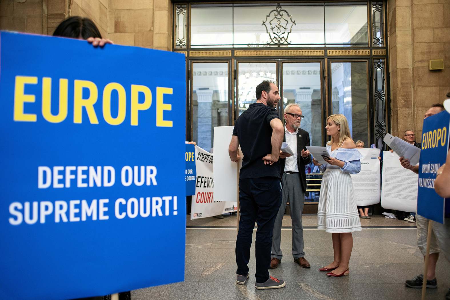 Oczywiście nie wiadomo, czy listy otwarte, konferencje prasowe, akcje informacyjne i demonstracje organizowane przez ruchy obywatelskie przyniosą jakieś wymierne efekty poza kolejnym nagłośnieniem problemu. Zainteresowanie społeczne stanem polskiego sądownictwa nie przypomina masowych protestów z lipca 2017 r., nie ma tłumów palących tzw. łańcuch świateł. 4 czerwca przed sesją EPP (European People’s Party, Europejskiej Partii Ludowej) w Pałacu Kultury i Nauki w Warszawie europosłowie byli średnio zainteresowani akcją informacyjną Obywateli RP z udziałem członków KOD. Jedynie kilkoro z nich zatrzymało się na dłużej, wzięło ulotki, chciało przez chwilę porozmawiać. Nie wygląda to na silne poparcie inicjatywy petycji do Komisji Europejskiej na temat ustawy o Sądzie Najwyższym.