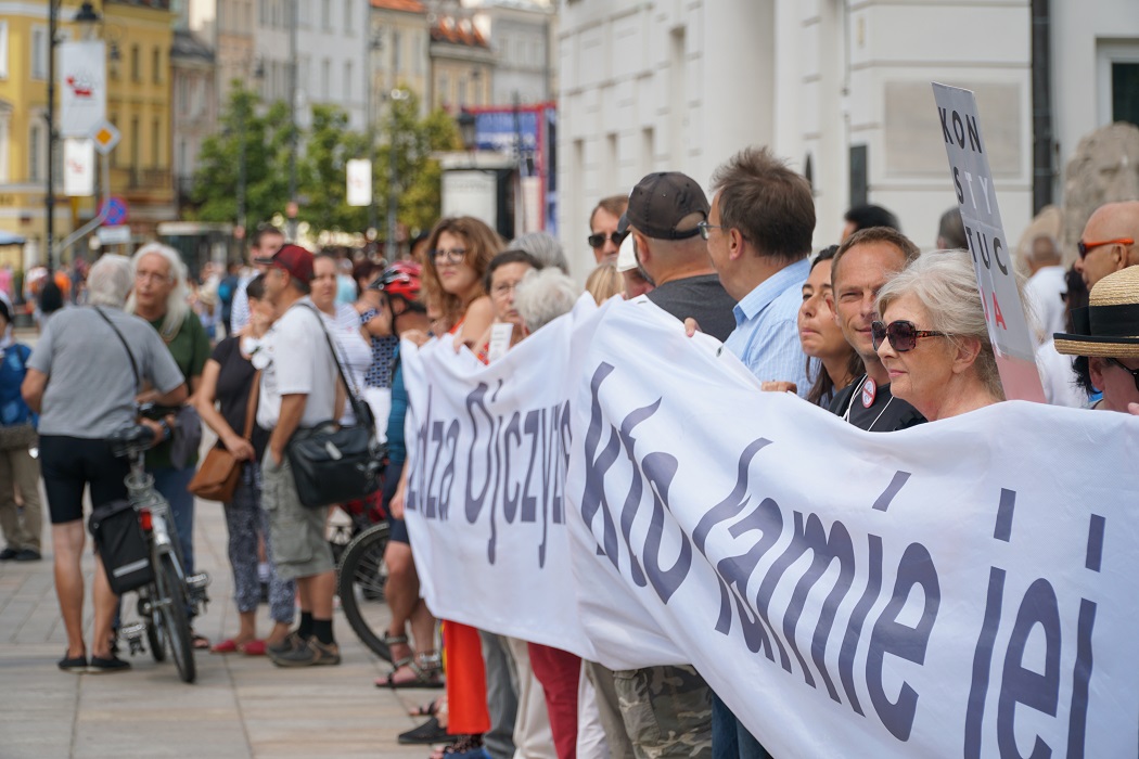Z kolei przed Pałacem Prezydenckim, siedzibą PiS czy KRS Obywatele RP oraz członkowie innych ruchów społecznych stają z innym transparentem, choć oczywiście także nawiązującym do Konstytucji RP. Ma on hasło: „Zdradza ojczyznę ten, kto łamie jej najwyższe prawo”. To nie tylko wymowny komunikat, ale jednocześnie żądanie natychmiastowego zawieszenia wykonywania niekonstytucyjnych ustaw dotyczących sądownictwa.