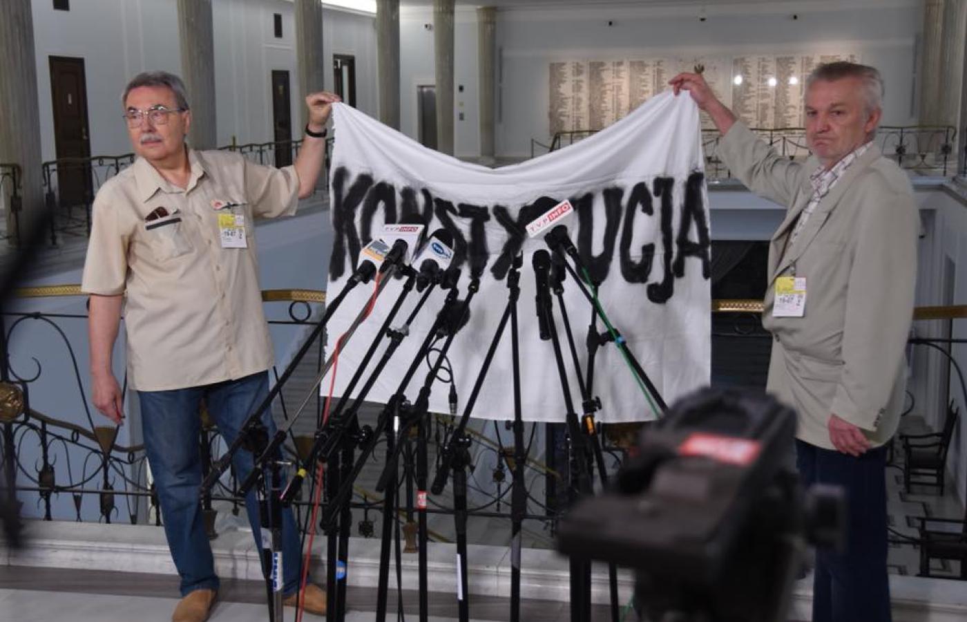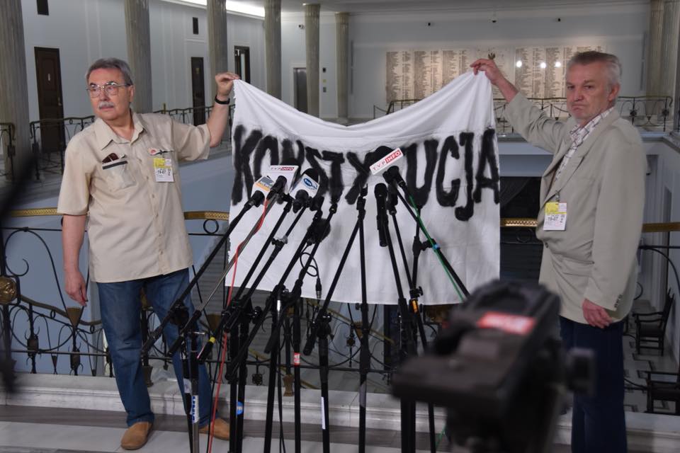 Wśród wielu różnych protestów przeciwko łamaniu praworządności przez PiS ten, na który zdobyli się dwaj niemłodzi już byli politycy, wydaje się szczególnie dramatyczny. Obaj byli kiedyś posłami. Andrzej Kostarczyk (72 lata) i Jacek Szymanderski (73 lata) weszli w czwartek 19 lipca do gmachu Sejmu, rozwinęli własnoręcznie wykonany baner z napisem „Konstytucja” i wygłosili oświadczenie, w którym sprzeciwili się poczynaniom Prawa i Sprawiedliwości.