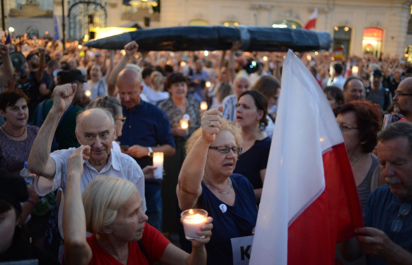 Podobne demonstracje odbywały się w ponad 40 miastach, gdzie ich uczestnicy utworzyli „łańcuch światła”. Przypomnijmy: w nocy z 24 na 25 lipca bez poprawek Senat przyjął piątą już nowelizację ustaw sądowych. W czwartek 26 lipca ustawy podpisał prezydent Andrzej Duda. Ustawy te praktycznie umożliwią przejęcie Sądu Najwyższego przez partię rządzącą. Zmiany były krytykowane przez Rzecznika Praw Obywatelskich, Stowarzyszenie Sędziów Polskich „Iustitia”, Helsińską Fundację Praw Człowieka oraz sam Sąd Najwyższy. Według SN ustawa jest przykładem skrajnego wykorzystywania prawa do celów politycznych. I jest to dowód rządów nie prawa, ale prawem, w których prawo to staje się systemem opresji przy zachowaniu pozorów legalizmu.