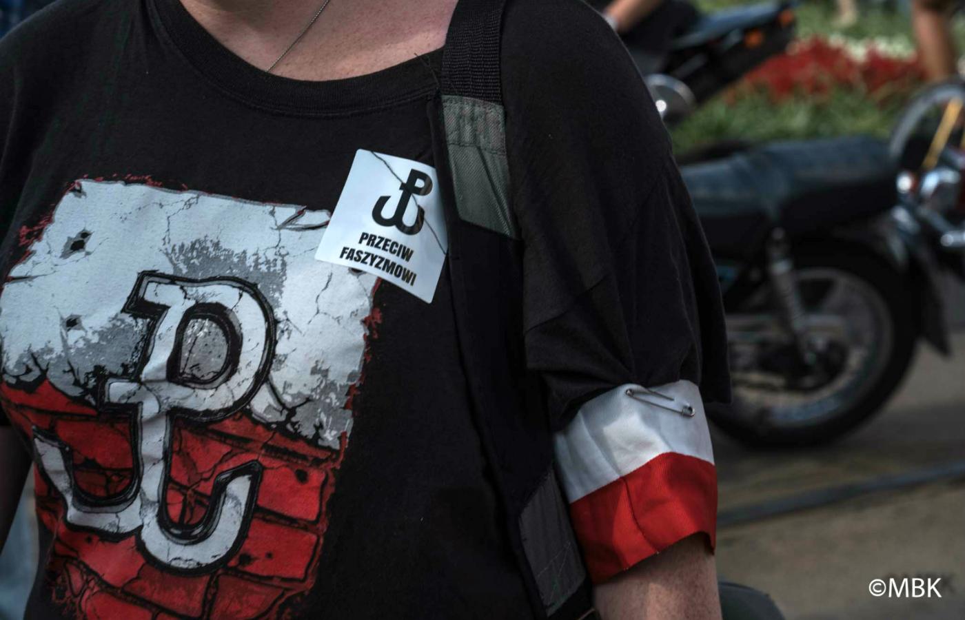 O godz. 16 wokół ronda Dmowskiego, na którym gromadzili się uczestnicy zorganizowanego przez Ruch Narodowy, Młodzież Wszechpolską, ONR i inne podobne ideologicznie grupy marszu z okazji rocznicy wybuchu Powstania Warszawskiego, stanęło kilkudziesięciu wolontariuszy w koszulkach z charakterystyczną Kotwicą i napisem „Polska Walcząca Przeciw Faszyzmowi”. Wręczali przechodniom wlepki z takim samym hasłem i wyjaśniali, dlaczego to robią. Napisy samoprzylepne brali też, chyba z rozpędu, młodzi nacjonaliści. Niektórzy z nich przyczepiali je sobie do T-shirtów, inni, kiedy zorientowali się, jaka jest wymowa hasła, z nieskrywanym obrzydzeniem wrzucali je do pojemników na śmieci.