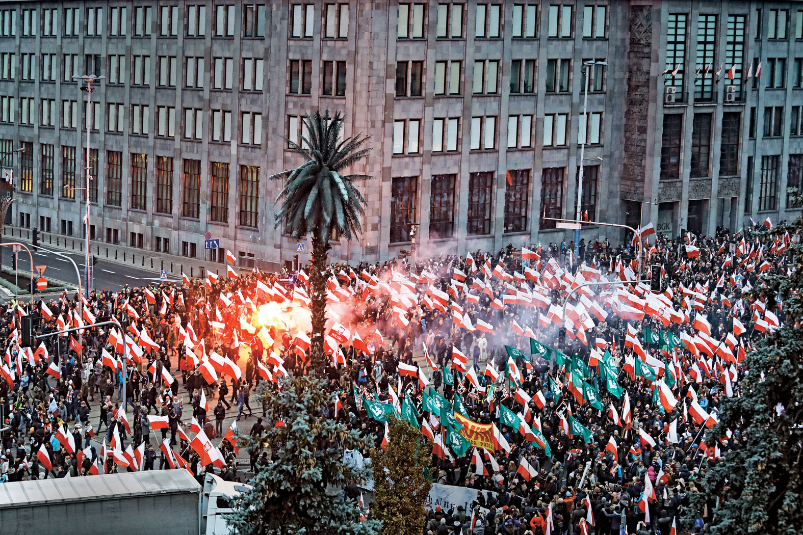 Atrakcji na niepodległościowy weekend zapowiedziano w całej Polsce mnóstwo. Nie tylko patriotycznie pompatycznych i podniośle religijnych, także tych rozrywkowych i biesiadnych. Biegano, chodzono, by czcić rocznicę. Przez Poznań przeszła parada świętomarcińska. Na piknikach w całym kraju masowo jedzono grochówkę z kotłów wojskowych. Grano polskie koncerty niepodległościowe w dalekich miastach świata. Były gry historyczne o polskiej drodze z zaborów do wolności. Warsztaty patriotyczne dla dzieci. Było – jak zwykle w Polsce – świąteczne obcowanie z bronią palną, także w otwartych dla wszystkich ogrodach Kancelarii Premiera dało się obejrzeć karabiny. Grupy rekonstrukcyjne inscenizowały ważne wspomnienia historyczne – przeważnie bitwy albo przemarsze. Wielki wkład w bicie rekordu w śpiewaniu hymnu polskiego miały dzieci szkolne – minister edukacji Anna Zalewska podała liczby: godzina 11.11, hymn zaśpiewa 4,6 mln dzieci w 24 tys. szkół.