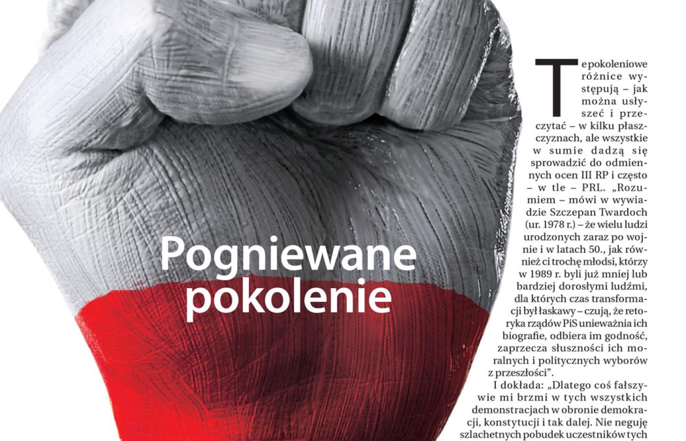 Autorzy artykułu przytoczyli barwne cytaty z wywiadów m.in. z Pablopavo, Szczepanem Twardochem czy ze mną; pojawiły się w nim także odwołania do wydanego niedawno „Końca pokoleń podległości” Jarosława Kuisza. Mam wrażenie, że nazbyt łatwo przyszło panom Janickiemu i Władyce na tej podstawie stawianie generalnych tez odnośnie do pokoleniowych doświadczeń i oczekiwań od III RP, dotyczących choćby „niejakiego lekceważenia manifestacji w obronie praworządności” czy „specyficznego zrównania ważności wielu wątków – ekonomicznych, ustrojowych, obyczajowych, kulturowych”.
