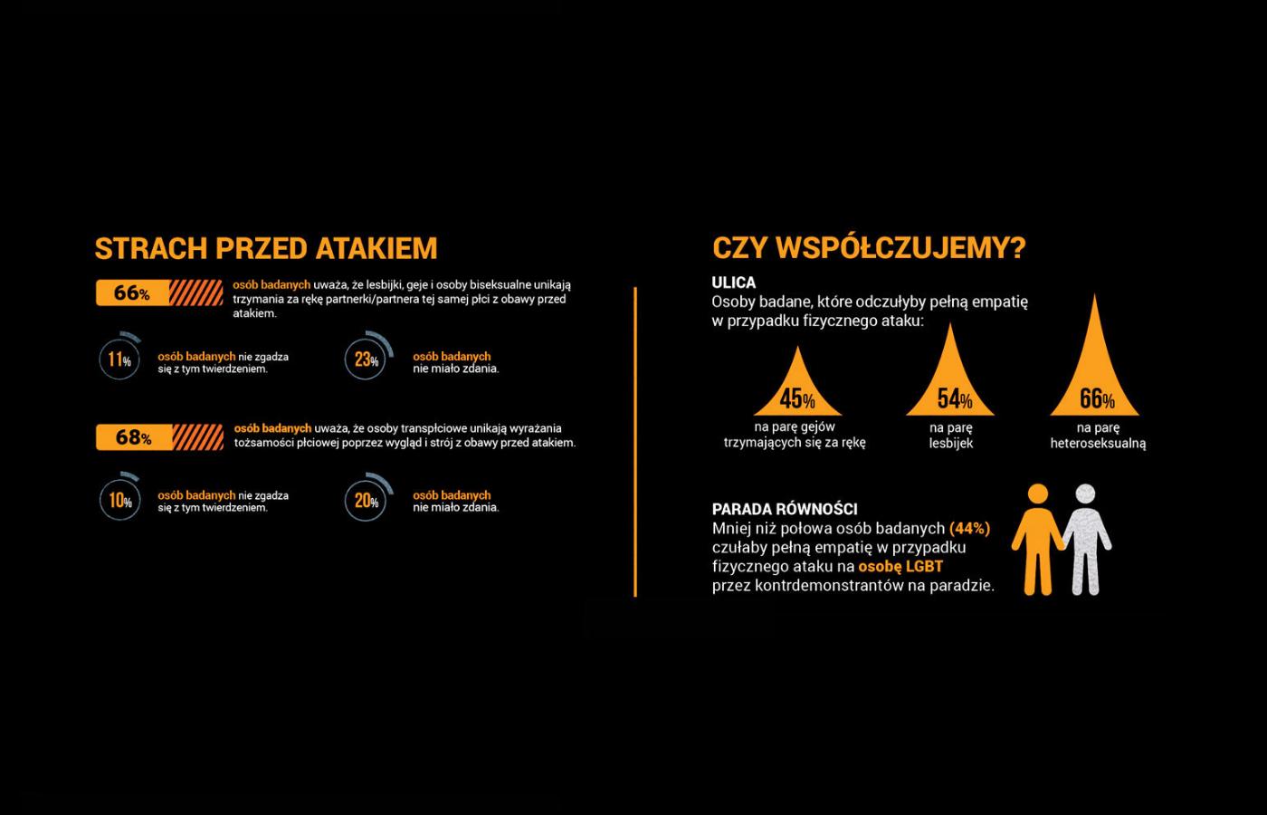 Ponad połowa Polaków ma świadomość, że przemoc wobec osób LGBT jest poważnym problemem, niemal tyle samo zdaje sobie sprawę, że atak powodowany czymś, czego nie można zmienić (jak orientacja seksualna lub tożsamość płciowa), niesie ze sobą gorsze skutki niż napaść z innej przyczyny; gorzej jest jednak, kiedy pytania dotyczą nie deklaracji, a reakcji. W przypadku ataku na geja zareagowałby (bezpośrednio lub pośrednio, np. wzywając policję) co czwarty ankietowany – to mniej więcej tyle, ile w przypadku „normalnej” napaści (na „kogoś” – 27 proc.). Polacy chętniej za to pomogliby lesbijkom (30 proc.), ale tylko 21 proc. zainterweniowałoby, gdyby popchnięto lub uderzono osobę transpłciową – tak wynika z badań Kantar Polska dla Lambda Warszawa (metoda CAWI na reprezentatywnej próbie 1 tys. osób). Stowarzyszenie, wraz z Miłość Nie Wyklucza, zainaugurowało właśnie kampanię społeczną „Po prostu reaguj”. Chodzi nie tylko o uświadomienie Polakom, że agresja wobec osób LGBT jest bardzo częsta i może dotyczyć nawet blisko 70 proc. osób nieheteronormatywnych, ale też o przekonanie, że reakcja na przemoc jest niezmiernie ważna.