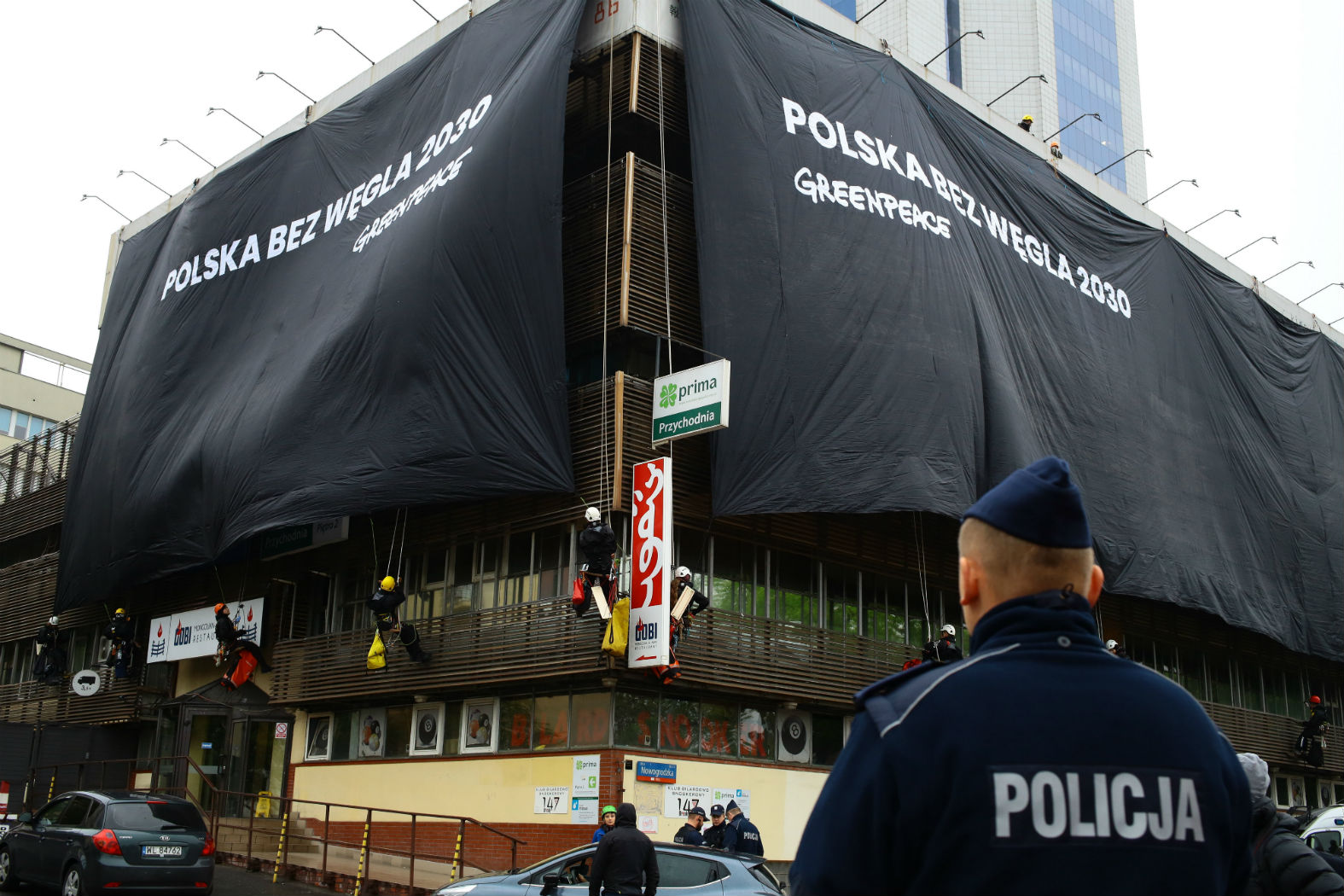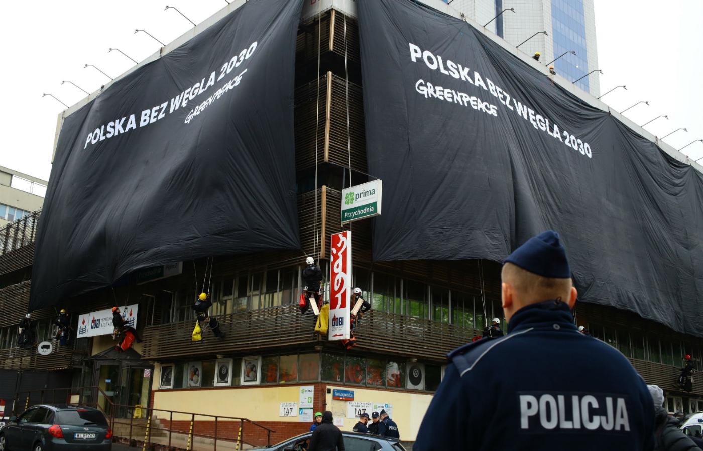To protest wymierzony w myślenie magiczne naszej klasy politycznej. Aktywiści Greenpeace opakowali czarnymi płachtami siedziby dwóch partii. Na Nowogrodzkiej nie powstrzymała ich policja, pilnująca przecież na okrągło biura prezesa PiS. Wspinaczom udało się i przy Wiejskiej, choć tam siedziba PO sąsiaduje z chronionymi kancelariami prezydenta i parlamentu. Happening zakończył się zatrzymaniem prawie 50 osób z kilkunastu państw, pewnie będą zarzuty.