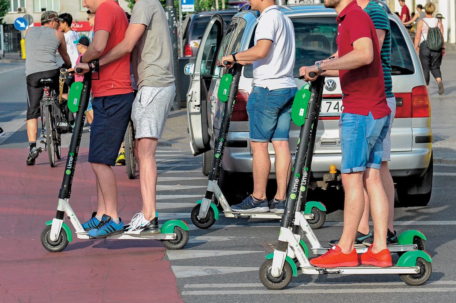 Liczba elektrycznych hulajnóg na chodnikach polskich miast rośnie w geometrycznym tempie. Przybywa prywatnych urządzeń, a w dużych miastach działa coraz więcej sieci wypożyczalni e-hulajnóg na minuty. W efekcie chodniki są już nie tylko trasami komunikacji hulajnogowej, ale także placami postojowymi urządzeń czekających na wypożyczenie. Wzrasta też liczba jeżdżących innymi wynalazkami: elektrycznymi deskorolkami, żyroskopowymi monocyklami czy segwayami. A co za tym idzie, coraz więcej jest kolizji, ruch odbywa się w kompletnym chaosie i wymaga wyjątkowej zręczności, której często brakuje, zwłaszcza pieszym.