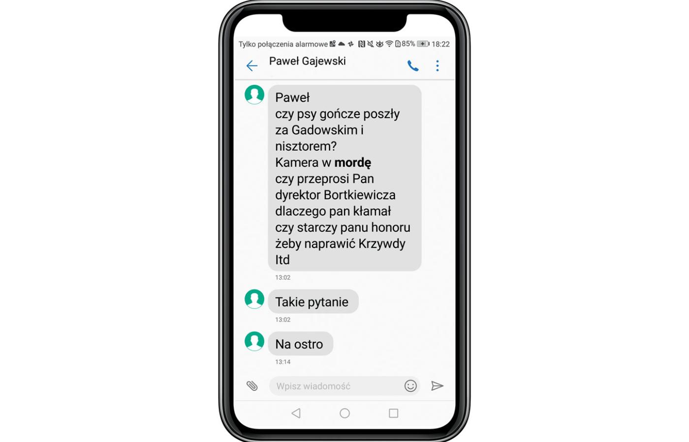 MARIUSZ KOWALEWSKI: – Tak, wiem. Kiedy inni stamtąd odchodzili, to ja akurat przyszedłem. To dzisiaj źle wygląda. Ale tak naprawdę zatrudnili mnie, abym pisał newsy na portalu TVP Info. I początkowo wszystko było w porządku. Nie pisałem propagandówek politycznych, ale informacje, i robiłem to rzetelnie, tak jak wcześniej teksty dla „Gazety Wyborczej”, „Rzeczpospolitej” czy tygodnika „Wprost”.