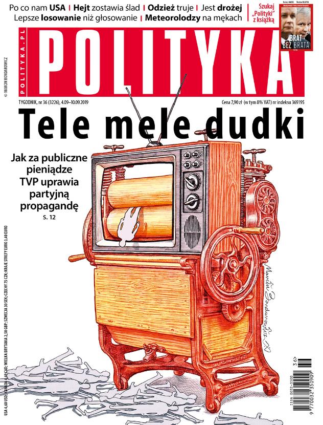 Udział publicznej telewizji w propagandzie partyjnej i rządowej wygląda już na oswojony, wpisał się w polityczny folklor, wydaje się wręcz bagatelizowany. Mało kto po kilku latach tego procederu zauważa, jak wielką rolę odgrywa TVP w kreowaniu wizerunku władzy, tuszowaniu jej wpadek, lansowaniu polityków tego obozu. Ma to znaczenie zwłaszcza przed wyborami, w dodatku jest to kampania finansowana z budżetu państwa, poza partyjnymi wydatkami. W najnowszej „Polityce” ponownie przyglądamy się treściom, przekazom i technikom manipulacyjnym stosowanym przez „narodową” telewizję. Polecam obszerny tekst Anny Dąbrowskiej, a także wywiad z byłym pracownikiem TVP, w którym opowiada o doświadczeniach pracy na tym ideologicznym froncie.