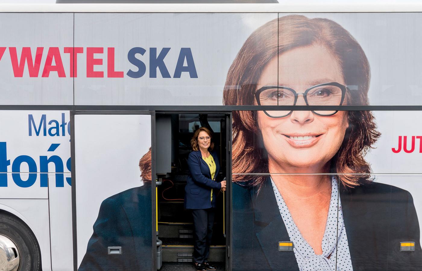 Podróże Małgorzaty Kidawy-Błońskiej przebiegają wedle podobnego scenariusza. Zmieniają się tylko wątki tematyczne, dobierane kolejno z programu KO. Jeśli tematem jest służba zdrowia, kandydatka odwiedza szpital. Jeśli przedsiębiorczość, to spotkanie z drobnym biznesem. Ubiegłotygodniowy poniedziałek sztabowcy poświęcili na promocję programu dla społeczeństwa obywatelskiego.
