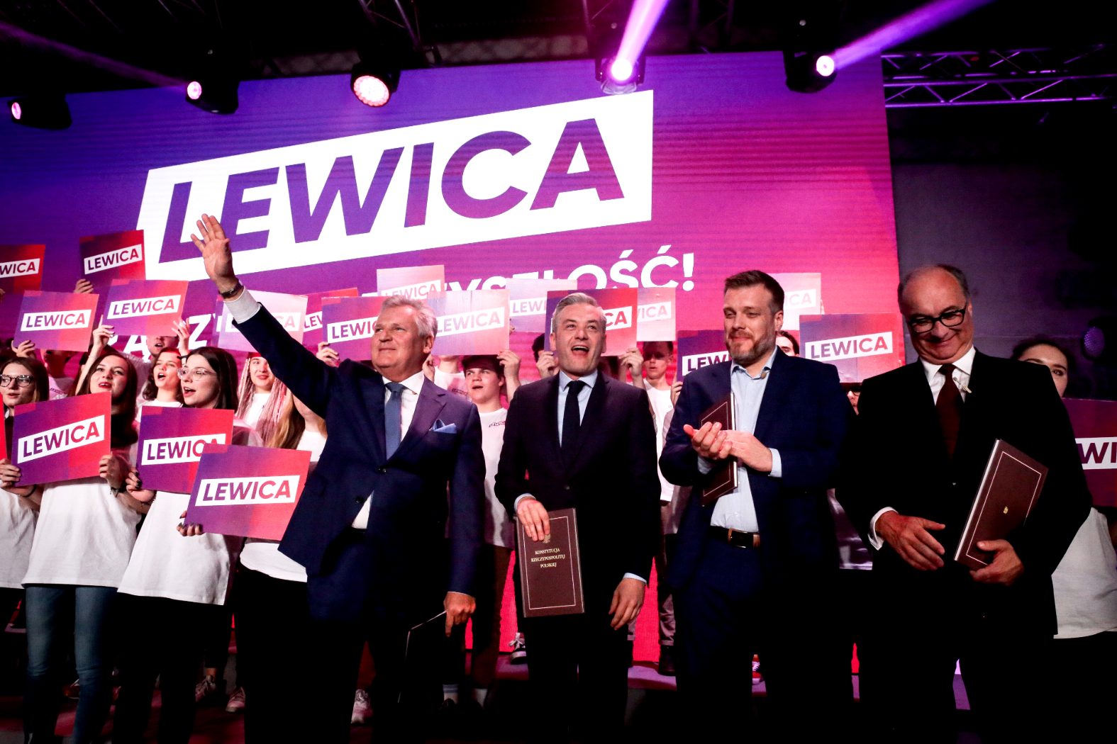 Były prezydent przypomniał osiągnięcia z czasów swojej prezydentury – uchwalenie konstytucji, wejście do NATO i Unii. – Lewica od początku, przez 30 lat polskiej demokracji, zawsze stała na stanowisku, że konstytucja jest rzeczą świętą – mówił. Zaapelował do swoich dawnych wyborców o głosowanie na Lewicę i wykonał symboliczny gest, przekazując egzemplarz ustawy zasadniczej każdemu z trzech liderów komitetu. Gest ten zakłócił nieco swoisty „moment Kidawy-Błońskiej”, kiedy okazało się, że jedna z konstytucji gdzieś zaginęła (szczęśliwie tylko na chwilę). Przekaz jednak był jasny: my swoje zrobiliśmy, czas na młodszych. W ten sposób Kwaśniewski dobrze wpisał się w docenianą ponoć przez wyborców narrację o wspólnym komitecie trzech pokoleń lewicy.