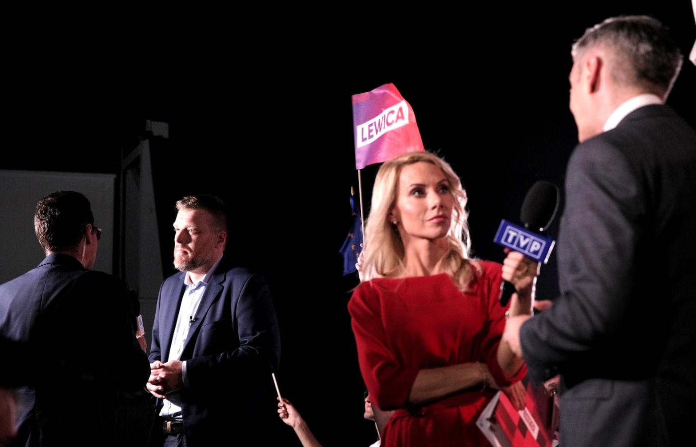Trudno o bardziej wymowny obrazek niż ten ze sztabu wyborczego Lewicy tuż po ogłoszeniu wstępnych wyników. Liderzy – Włodzimierz Czarzasty, Adrian Zandberg i Robert Biedroń – stoją na scenie, milczą. Przed nimi działacze machają flagami: polską, europejską i tą z logo Lewicy. Do wszystkich z telebimu przemawia Jarosław Kaczyński. Stupor ustępuje dopiero po chwili.