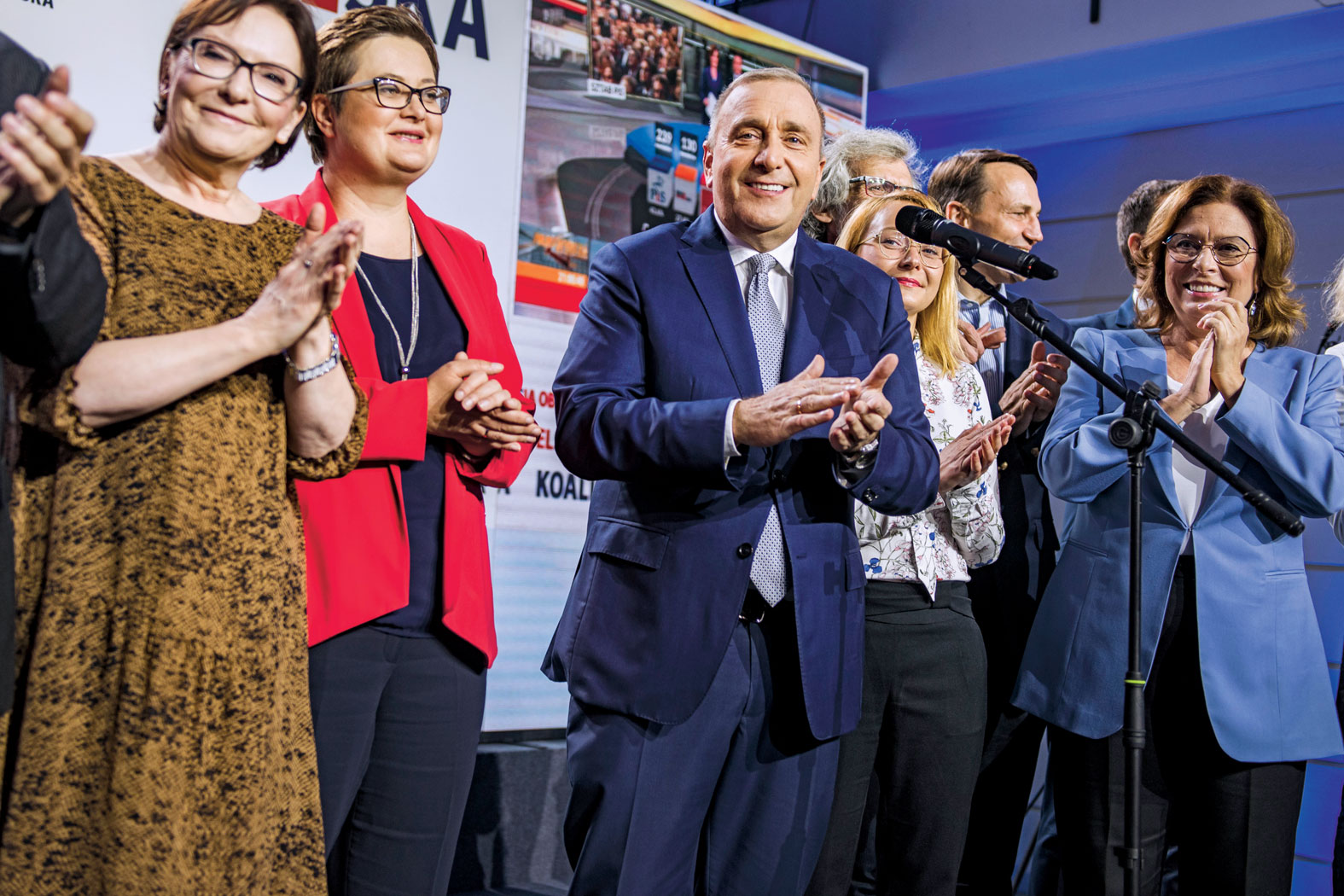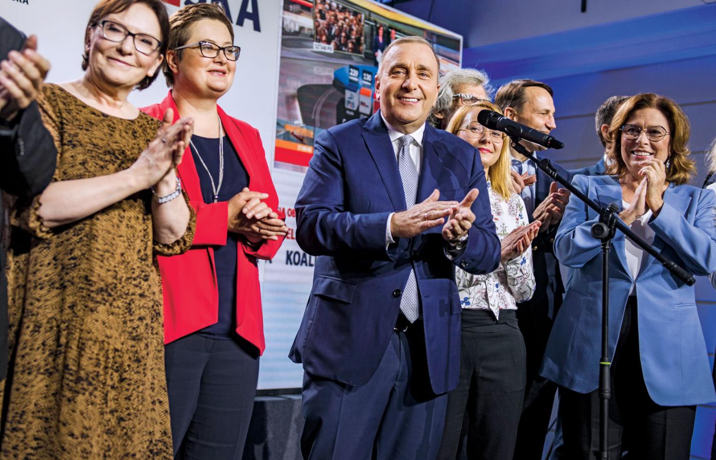 Tu na zwycięstwo nikt nie liczył. Nadzieję pokładano jedynie w tym, że PiS nie zdobędzie samodzielnej większości w Sejmie, a kandydatom opozycji uda się odbić Senat. Mimo to w warszawskim sztabie Koalicji Obywatelskiej sondażowe wyniki wyborów przyjęto z demonstracyjnym entuzjazmem. Były oklaski, powtarzano, że „opozycja ma przewagę” i jest realna szansa, aby wygrać prezydenturę, jeśli tylko znajdzie się wspólny kandydat popierany przez trzy prodemokratyczne środowiska. Bo razem komitety KO, SLD i PSL zdobyły prawie milion głosów więcej niż partia Kaczyńskiego. „Nie będzie Budapesztu w Warszawie” – wołał ze sceny Grzegorz Schetyna. Mógł dodać, że będzie Warszawa w Budapeszcie, bo akurat tego samego dnia kandydat węgierskiej opozycji odebrał Orbánowi Budapeszt. A Jacek Karnowski dodawał: „Wygraliśmy niesamowitą frekwencją, niesamowitą mobilizacją w naszych miastach”.