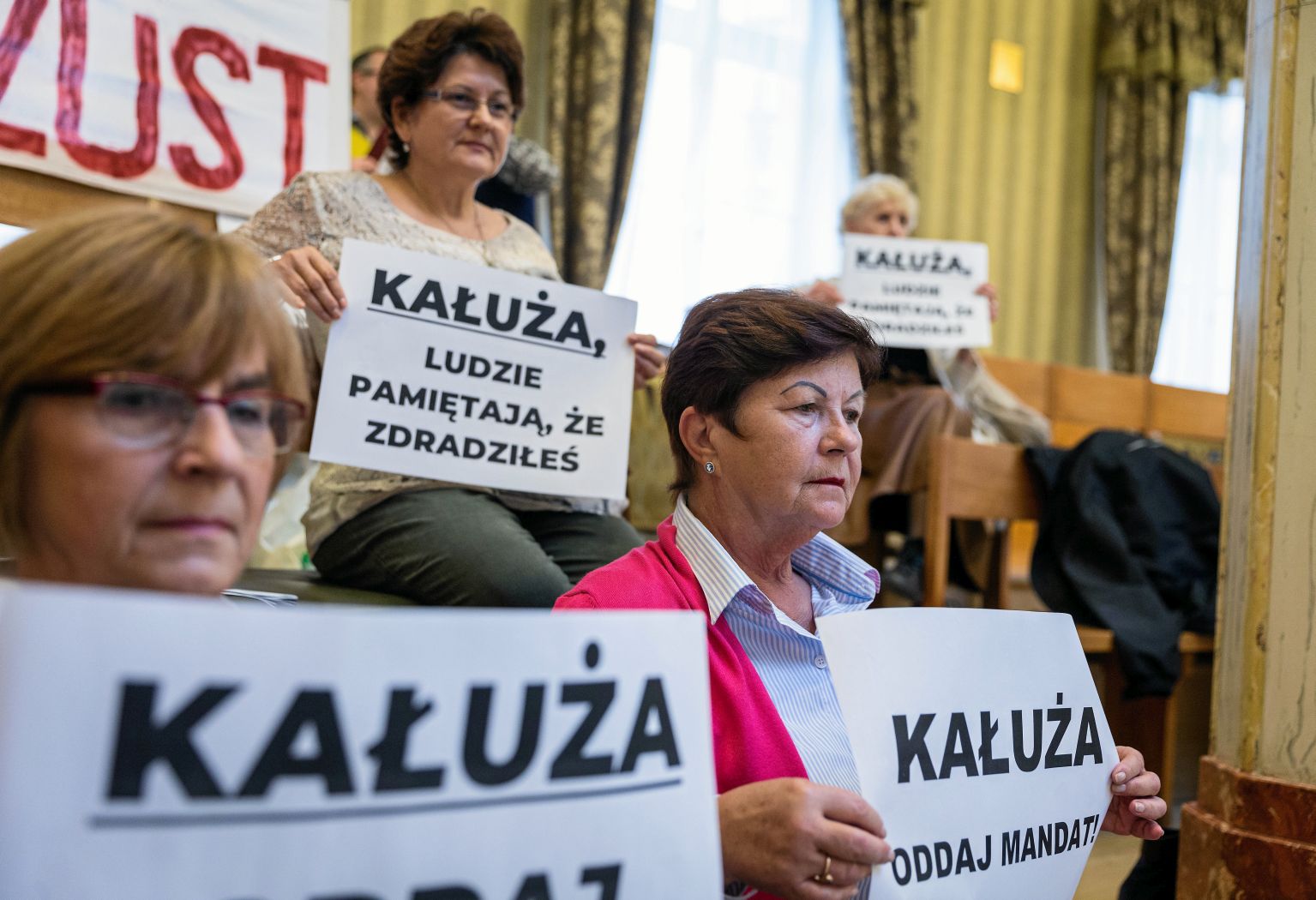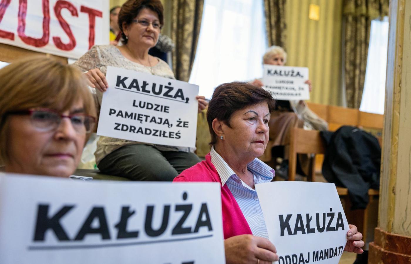 Od roku przed każdą sesją sejmiku na galerii historycznej Sali Sejmu Śląskiego zasiada kilka lub kilkanaście osób z transparentami, które krzyczą: „Kałuża, ty oszuście!”, „Kałuża, oddaj mandat!”, „Brutus – Judasz – Kałuża!”, „Zdrajca!”, „Oszust!” itd. To wszystko nad głową wicemarszałka, który siedzi około 15 m poniżej. Trudno w takiej atmosferze podnosić głowę. Już lepiej zostać ze spuszczoną. Bezpieczniej. Na początku swojej szumnej kadencji przekonywał, że po pół roku ludzie zapomną. Nie zapomnieli. Zapewniają, że będą w swym proteście trwać tak długo, dopóki Kałuża będzie trwał tam, gdzie jest. Okazuje się, że zemsta jest słodkim, rozkosznym maszkietem nie tylko dla bogów, ale i dla zwykłych, wkurzonych śmiertelników.