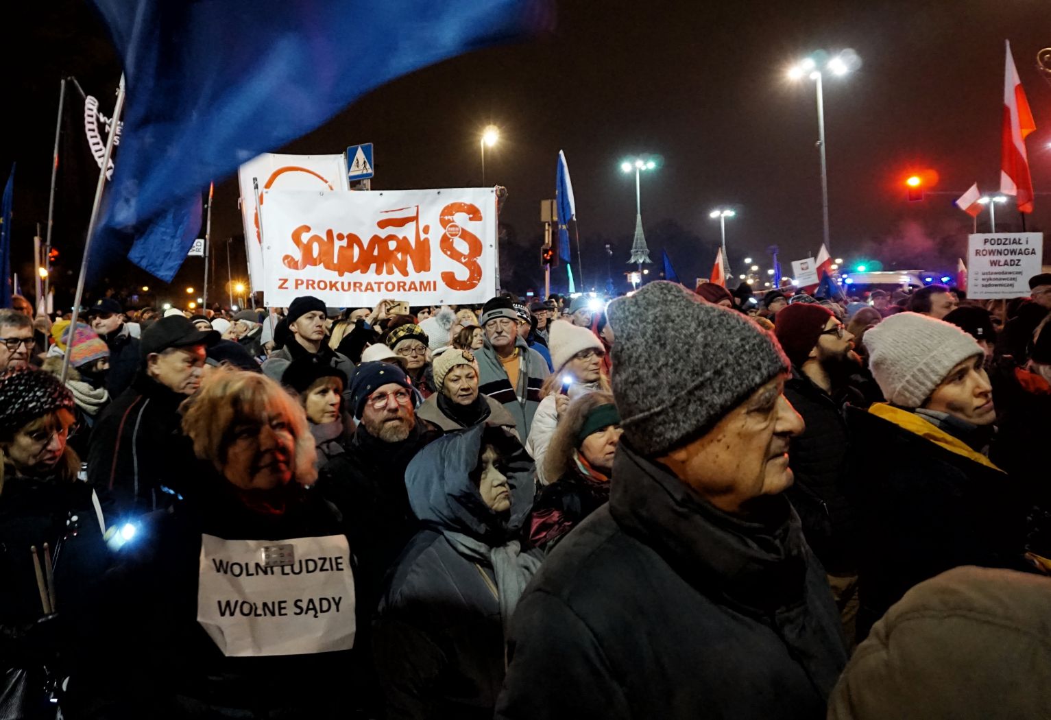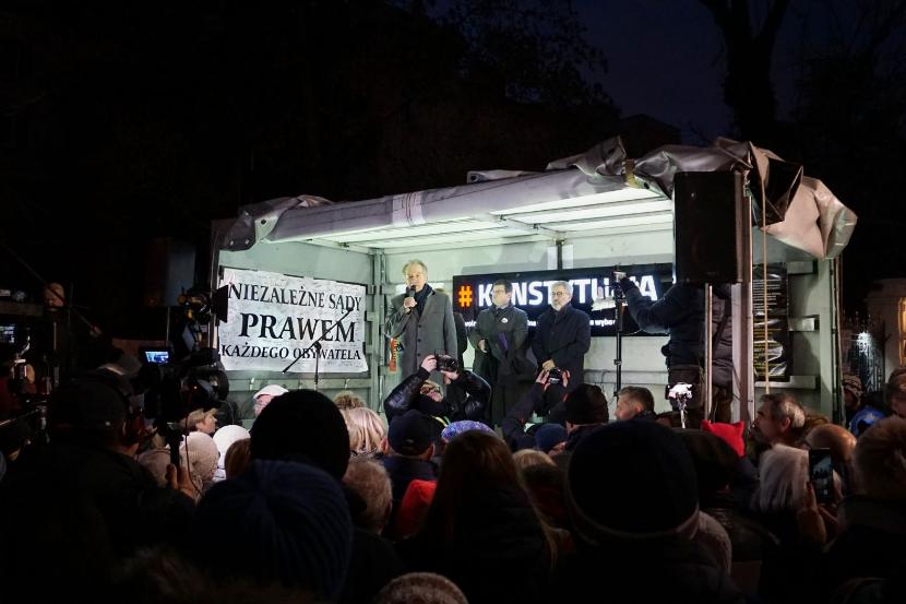 Na stołecznej demonstracji zebrało się kilka tysięcy osób. W tym sędziowie Trybunału Konstytucyjnego w stanie spoczynku: Ewa Łętowska, Andrzej Rzepliński, Mirosław Wyrzykowski i Wojciech Hermeliński. – Wiemy, jak okropna i opresyjna była władza komunistyczna. Jednak w działaniach przeciwko sędziom miała pewną granicę, do pewnych czynów – tak jak ta władza – się nie posuwała. Dlatego ogromny szacunek należy się wszystkim sędziom za to, że z godnością, poświęceniem i odwagą zmagają się z bezprawiem. I że wykonują to, co jest zapisane w rocie ślubowania: są strażnikami prawa, kierują się zasadami uczciwości i godności – mówił Hermeliński.