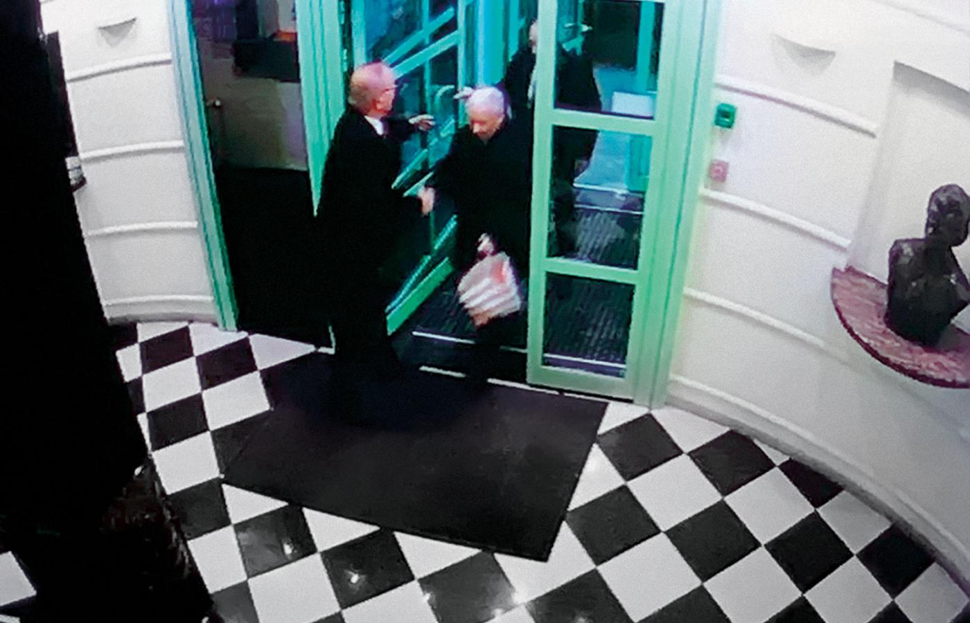 Tekst w „GW” o tajnych spotkaniach prezesa Kaczyńskiego z prezes Przyłębską ukazał się 23 maja. Do materiału dołączono zdjęcia z nagrań z monitoringu, na którym widać, jak do budynku wchodzi prezes PiS Jarosław Kaczyński. Budynek jest ochraniany i – jak pisali dziennikarze – gości wita konsjerż. Czasami prezes Kaczyński niesie reklamówkę, a towarzyszący mu ochroniarz teczkę z dokumentami.