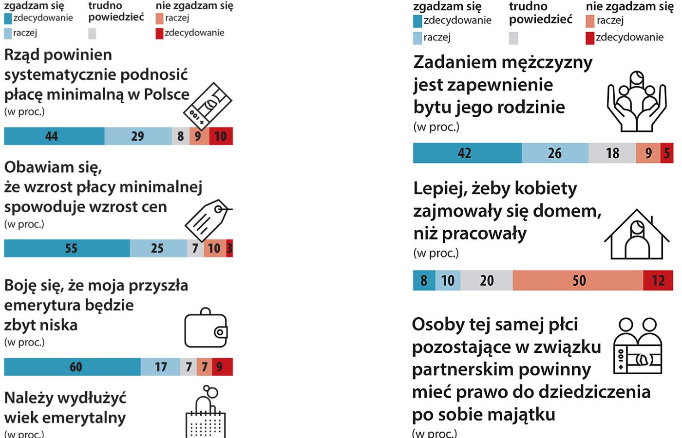 Pytaliśmy uczestników badania o szereg kwestii kluczowych dla życia publicznego. Odpowiedzi układają się w mapę społecznych poglądów, oczekiwań i lęków. Z podziałem na poszczególne elektoraty, dzięki czemu jesteśmy w stanie oszacować stopień ich wewnętrznej spójności oraz podatność na perswazje ze strony konkurencji.