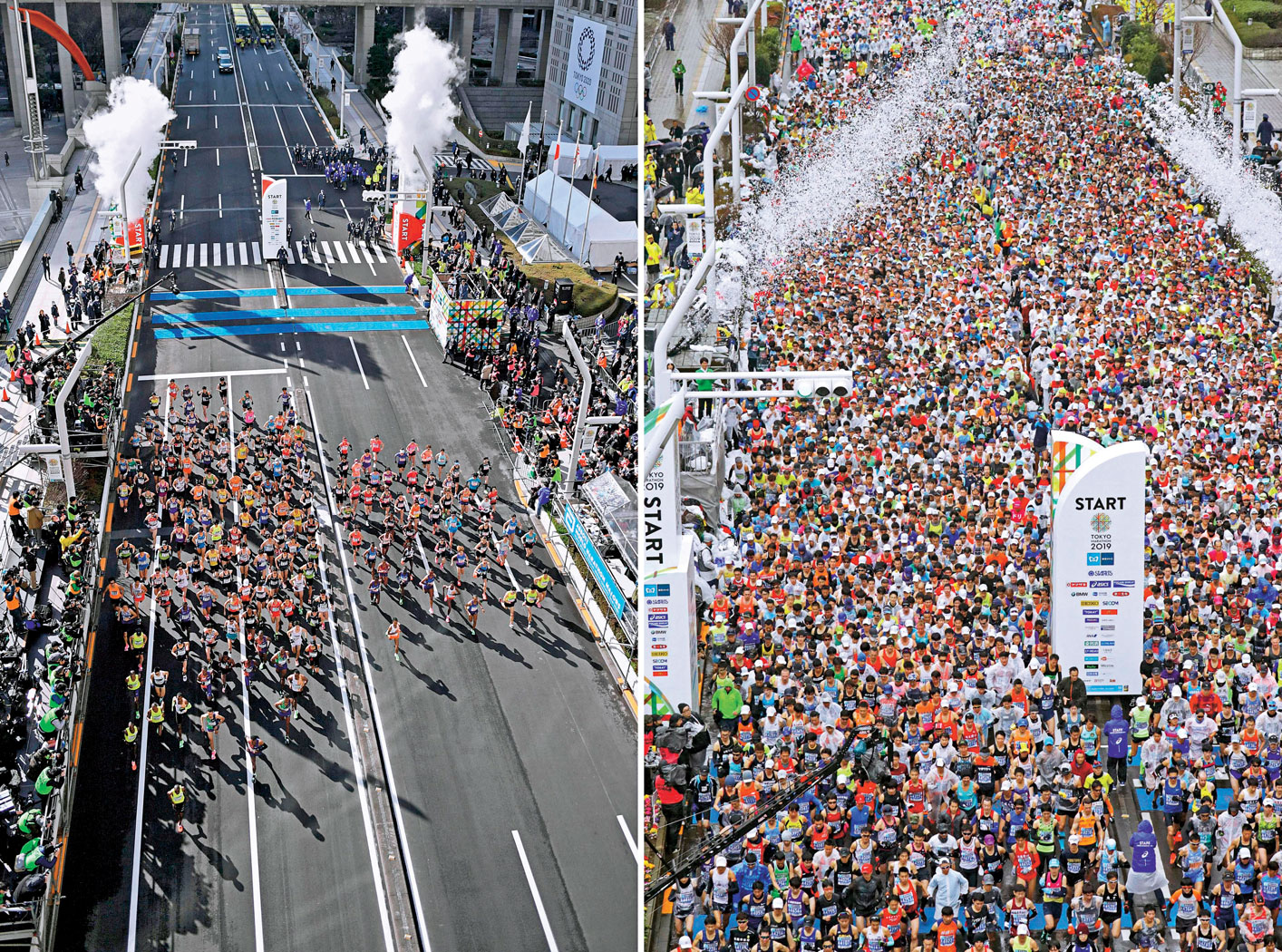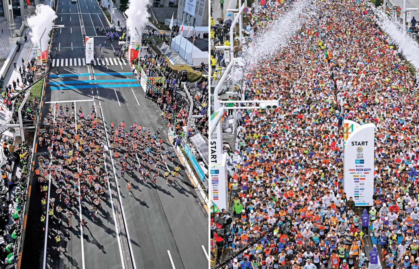 Nieliczni kibice wzdłuż trasy, wolontariusze z maseczkami zakrywającymi twarze, wątłe oklaski dla zwycięzców. Taka była 1 marca w Tokio sceneria jednego z największych maratonów świata. Zwykle przyciąga niemal 40 tys. uczestników, przeważnie amatorów. Tym razem, za radą organizatorów, na tokijskich ulicach ścigała się tylko elita zawodowców.