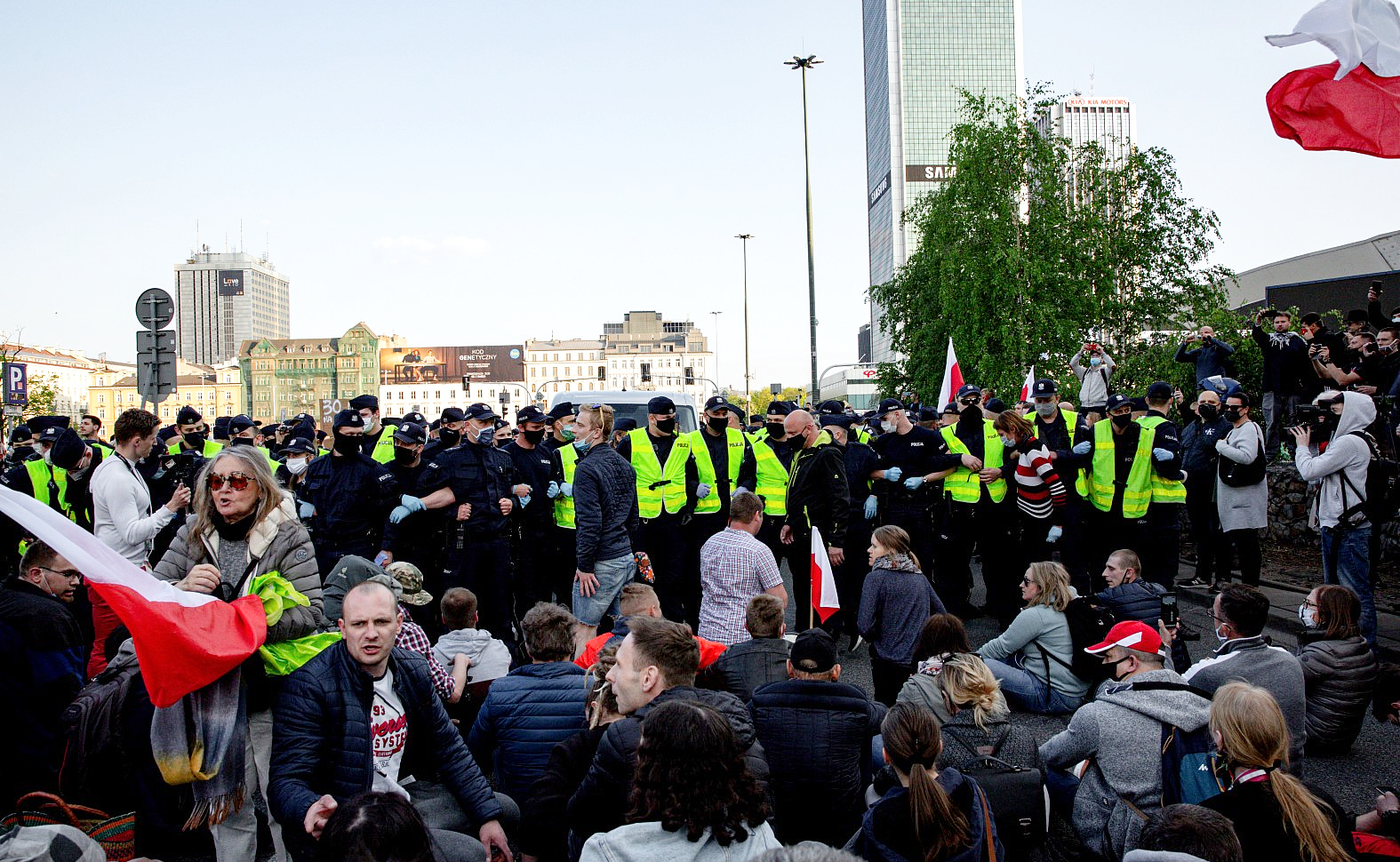Podczas demonstracji przedsiębiorców w Warszawie doszło do przepychanek z policją. Demonstrantów nie było wielu, co gorsza, przyłączyły się do nich osoby lekceważące zasady bezpieczeństwa i negujące niebezpieczeństwo zakażenia. Ale media odnotowują także protesty polityczne, których uczestnicy stosują się do przepisów epidemicznych (dwa metry odstępu, zasłanianie ust i nosa).