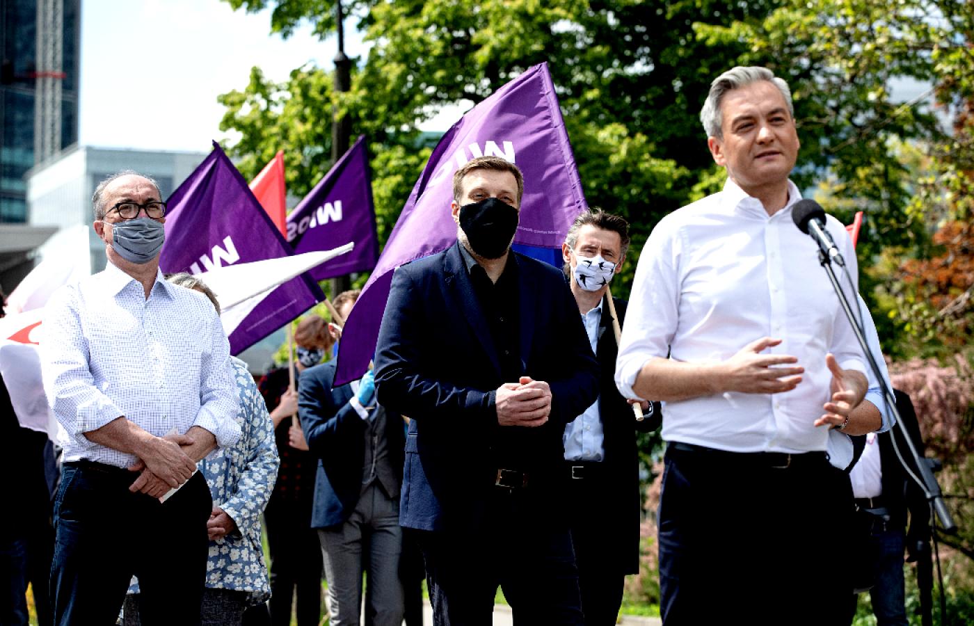 Wcześniej zapowiadano „restart” kampanii, choć ogłoszone w środę zmiany to raczej kosmetyka. Do kierującego dotąd kampanią posła Tomasza Treli z SLD dołączy posłanka Agnieszka Dziemianowicz-Bąk. Owszem, ceniona w lewicowych bańkach społecznościowych i – jak słychać w sztabie – podobno bardzo ostatnio aktywna, pracowita i pełna pomysłów. Choć mimo wszystko trudno mówić o wielkim przełomie. Przy okazji poinformowano, że Biedroń wznawia objazdy po kraju. Tyle że nie bardzo wiadomo, na jakiej podstawie prawnej i kto miałby za to płacić. Oficjalnie nie toczy się zatem żadna kampania.