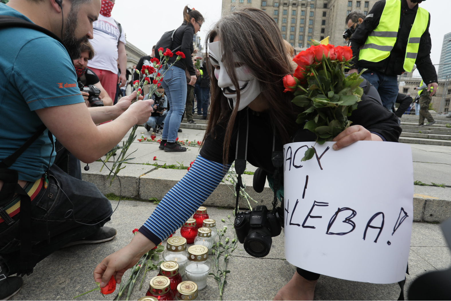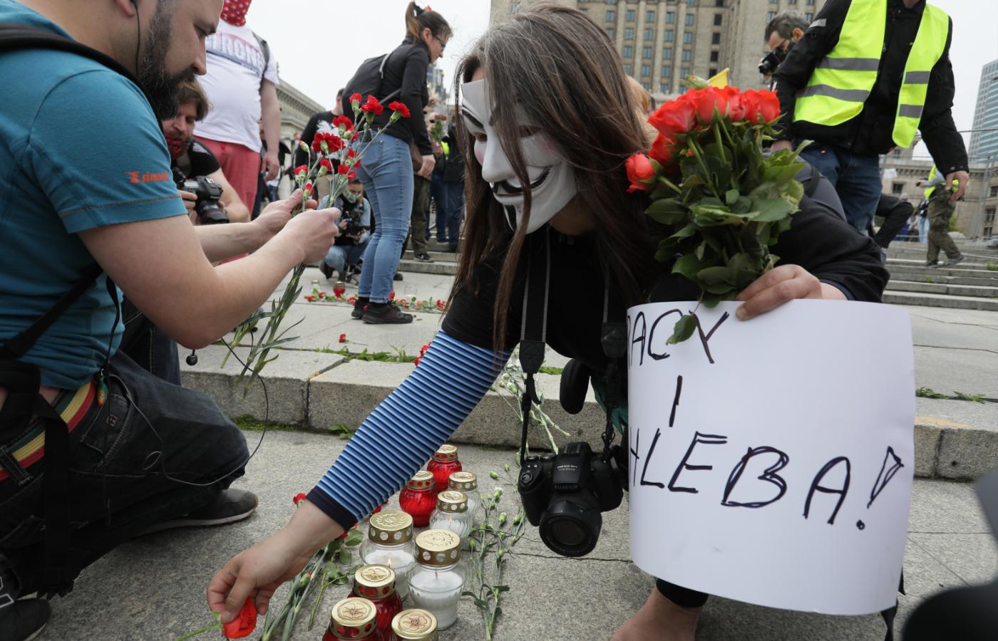 Po godzinie protestujący – w towarzystwie dużo liczniejszych niż oni sami zastępów policjantów – ruszyli w kierunku Pałacu Prezydenckiego. Policja rozbija tłum na mniejsze grupy, legitymuje, proponuje mandaty lub kieruje wnioski do sądu o ukaranie. Stara się nie przepuszczać protestujących na Krakowskie Przedmieście ani od strony ul. Świętokrzyskiej, ani Kopernika.