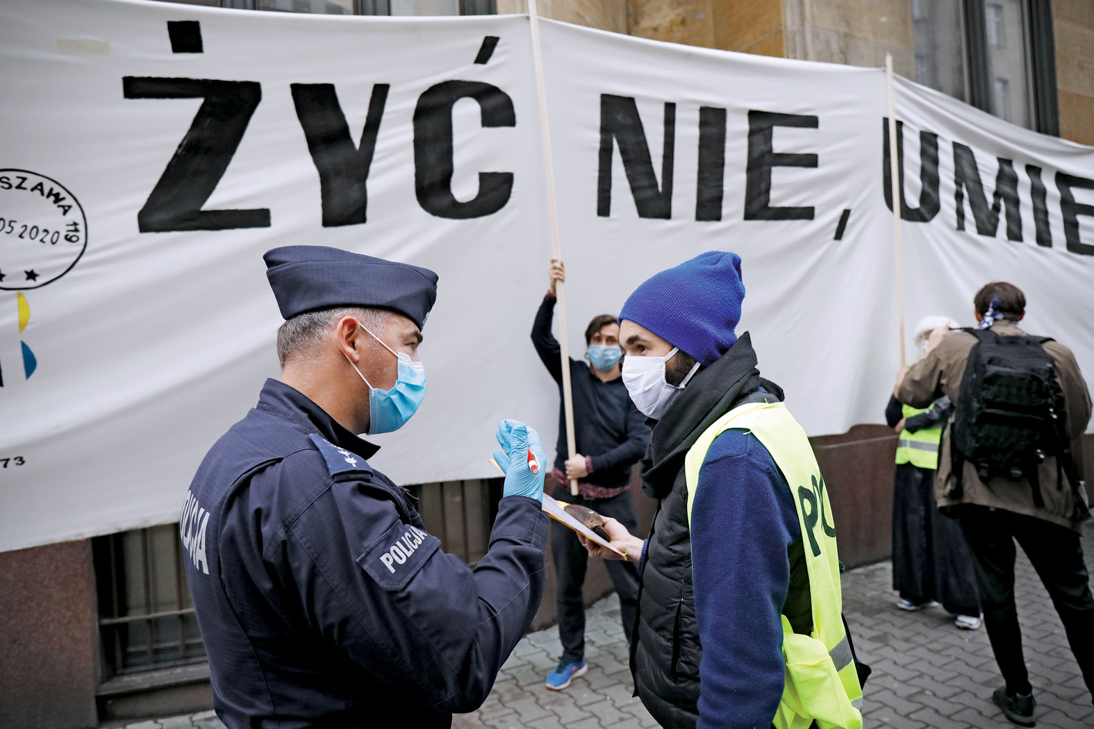 Ale nie ma wątpliwości, że dzisiaj, chociaż statystyki tego jeszcze nie obejmują, powiatowa inspektor sanitarna w Warszawie Jadwiga Mędelewska wysunęła się na czoło stawki, bo w stolicy odbywa się regularna łapanka uczestników ulicznych protestów i happeningów. Policja ich spisuje, wymierza karę porządkową 500 zł i niezależnie od mandatu kieruje wniosek do sanepidu. Stanisława Skłodowska nie ma wątpliwości, że ukarano ją z powodów politycznych. Szła z czterema innymi osobami przed Pałac Prezydencki, aby nagrać satyryczny filmik o wyborach organizowanych przez Jacka Sasina. Zachowywali między sobą odpowiedni dystans, mieli na twarzach maseczki. Po Krakowskim Przedmieściu spacerowały wtedy tłumy, wiele osób bez maseczek, mało kto przestrzegał dystansu, ale policjantów interesowali wyłącznie uczestnicy happeningu. Spisano ich, ukarano mandatami (których pani Stanisława i pozostali nie przyjęli, więc sprawa trafi do sądu), a następnie sporządzono notatki i wysłano je do PIS. Pani Stanisławie po kilku dniach policjanci dostarczyli decyzję sanitarną, ma zapłacić 5 tys.