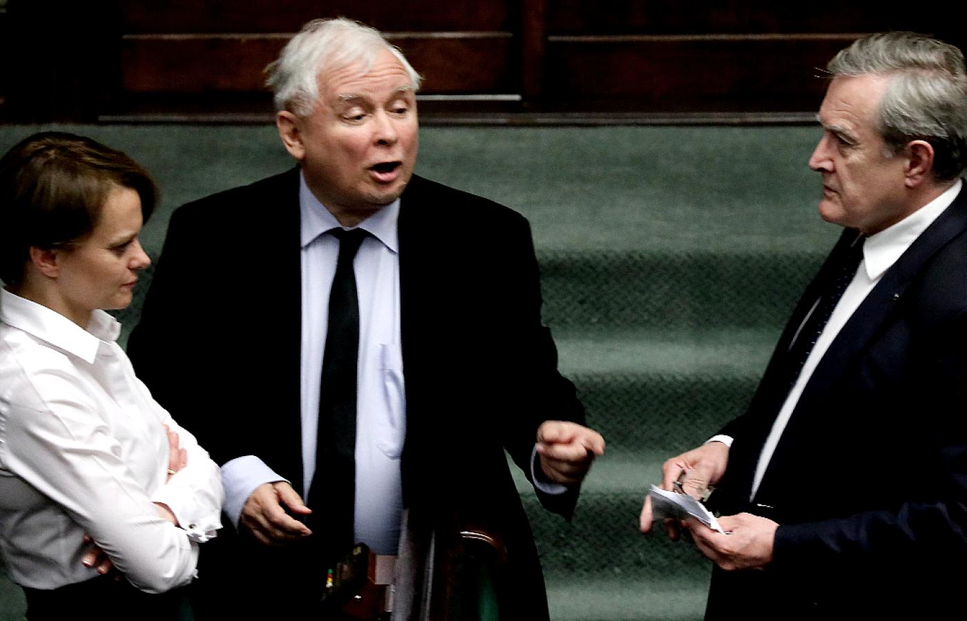 Znalazł się tam zresztą obok innych fraz Jarosława Kaczyńskiego. Na przykład słów: „Ja bez żadnego trybu”, którymi w lipcu 2017 r. usprawiedliwiał wtargnięcie na mównicę poza kolejnością i bez zgody marszałka Sejmu. Albo wyryczanego (z racji wściekłości trudno tu użyć słowa „wypowiedzianego”) zaraz potem do opozycji steku bluzgów i oskarżeń: „Nie wycierajcie swoich mord zdradzieckich nazwiskiem mojego świętej pamięci brata, niszczyliście go, zamordowaliście go, jesteście kanaliami!”. Czy też kierowanych wobec wszystkich niezgadzających się z wizją PiS określeń typu „najgorszy sort” (z wywiadu dla TV Republika, grudzień 2015), „element najbardziej zdemoralizowany, podły, animalny” (wywiad dla Superstacji, marzec 2016), „łże-elita III Rzeczypospolitej” (orędzie w Sejmie, luty 2006), a wreszcie „oni [stali] tam, gdzie ZOMO” (na wiecu poparcia dla rządu w Stoczni Gdańskiej, październik 2006).