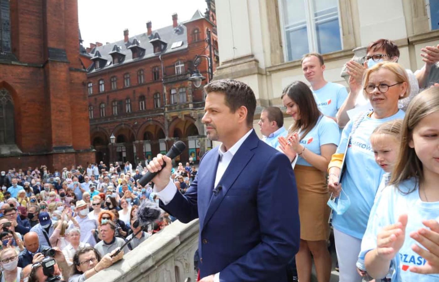 Rafał Trzaskowski odniósł się też do prezydentury Andrzeja Dudy. – Prezydent powinien być przy ludziach, tam, gdzie są problemy. Ale przede wszystkim powinien być niezależny, a nie tylko słuchać prezesa jednej partii. I właśnie na tym nam zależy! Na silnym prezydencie! (...) Ważne, żeby nikt nas od Europy nie oddzielił. Na Dolnym Śląsku, gdzie się obejrzymy, widzimy inwestycje europejskie. Chcę zapewnić, że będziemy partnerem Unii. Będziemy walczyć, żeby Polska była respektowana.